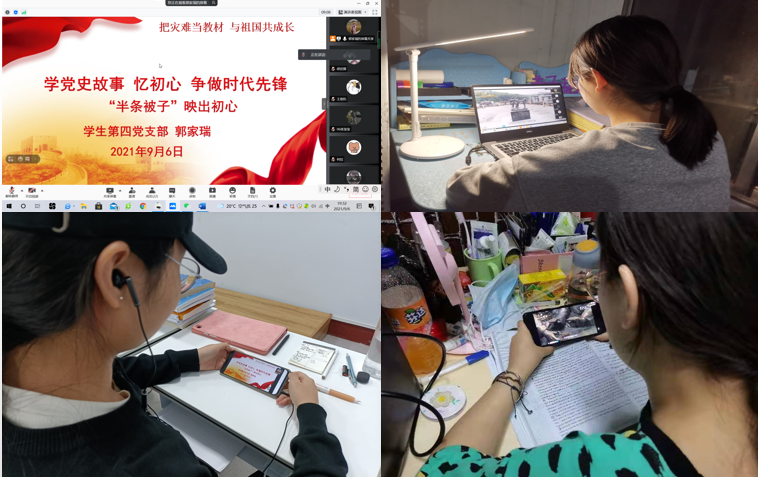 支部书记李龙梅带领同志们回顾了灾情中逆行者们的感人事迹,并切身讲述了自己身边的灾情故事。陈晓怡、王晨红、周燕杰、许雪唤、夏祯格、冉中帅、陈巍天等抗灾志愿者们分享了自己的志愿经历和成长感悟,他们表示,作为一名合格的大学生,应该做到与国家共进退,为祖国奉献出自己的青春力量。最后,李龙梅就疫情防控向党员同志们提出要强化党员意识,坚定理想信念,弘扬伟大建党精神,做好自身防护,积极参与抗疫,做到灾难面前与时代同频共振,懂得感恩前行、厚植爱国情怀、担当时代责任,与祖国共成长,以实际行动向党的百年诞辰献礼。