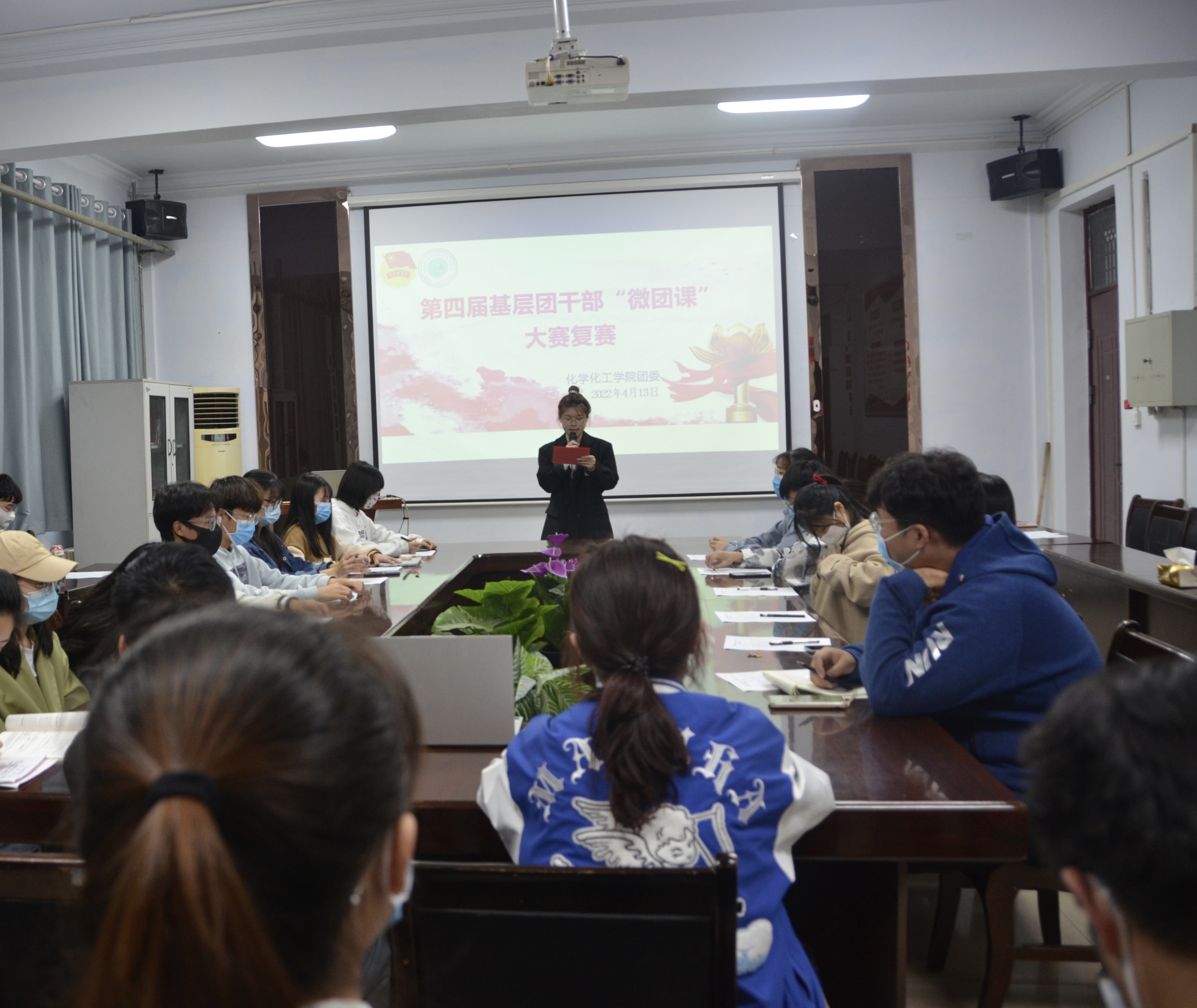 为进一步提升基层团干部能力和水平,达到以赛促训、以赛促学的目的,4月13日,化学化工学院团委于7号楼会议室开展了第四届基层团干部微团课比赛。20级各班团支部书记参加,化学化工学院团委副书记郭家瑞在线出席本次比赛。