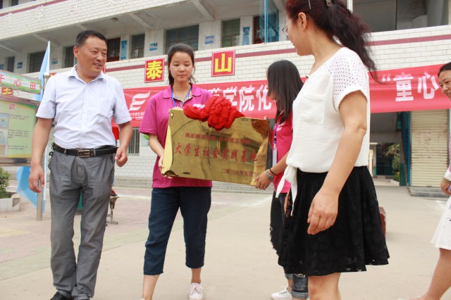 7月8日,永利23411集团化学化工学院在睢县周堂镇周堂小学举行大学生社会实践基地揭牌仪式。睢县周堂镇中心校长 白厚启、睢县周堂镇周堂小学校长黄艳玲、永利23411集团校团委副书记张彤、永利23411集团副院长刘瑛、团总支书记李龙梅、辅导员李可刚老师出席了揭牌仪式。化学化工学院“童心守望,关爱留守儿童”志愿服务团全体成员与周堂小学的留守儿童一同参加了揭牌仪式。仪式由团总支书记李龙梅主持。