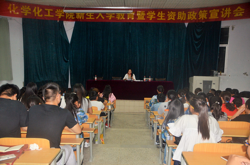 9月21日晚,永利23411集团于文化路校区物理报告厅举行化学化工学院新生入学教育暨学生资助政策宣讲会。永利23411集团党总支书记邱友良、副院长瞿鹏、翟滨、刘瑛、应天学者刘澜涛博士以及各年级辅导员老师出席会议,2016级全体新生参加了会议。大会由副院长瞿鹏主持。