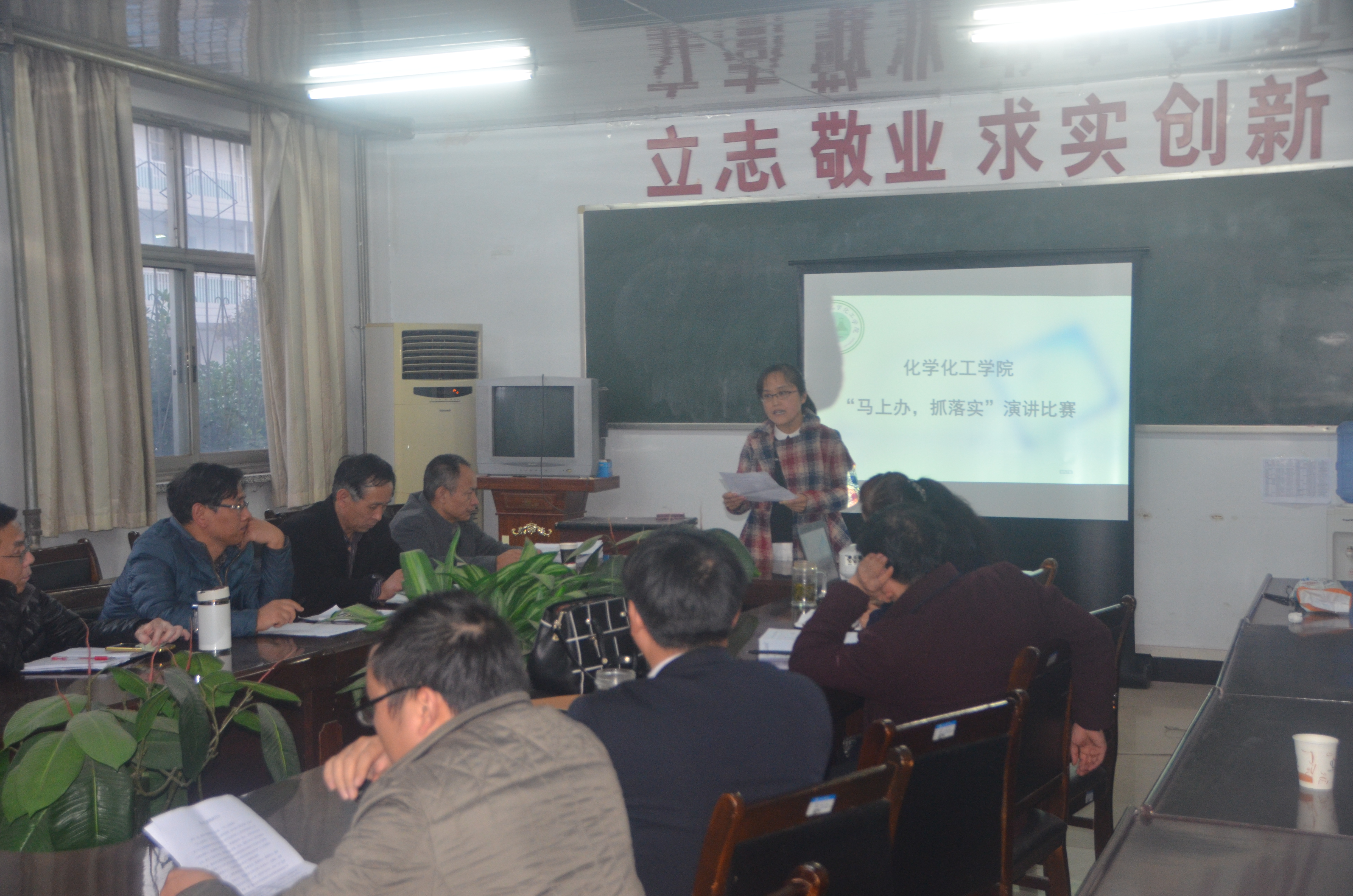 根据校“两学一做”学习教育办公室安排,永利23411集团于11月11日下午在院会议室举行了“马上办 抓落实”主题演讲比赛,比赛由院党总支邱友良书记主持。