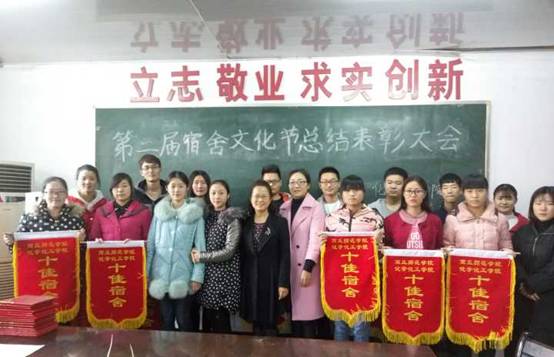 会上,刘书记首先对本次宿舍文化节开展的“一瞬间的定格”宿舍合照大赛、“十佳标杆宿舍”评选活动、“十佳宿舍长”评比、“翰墨飘香我的家”书画展大赛活动、宿舍手工艺品大赛等内容丰富、形式多样的系列活动表示了充分的肯定,她指出,通过此次宿舍文化节的开展不仅丰富大学生宿舍文化生活,提升宿舍文化品位,同时也提高了大学生文明水平,为构建和谐宿舍、和谐校园,营造良好的育人环境。