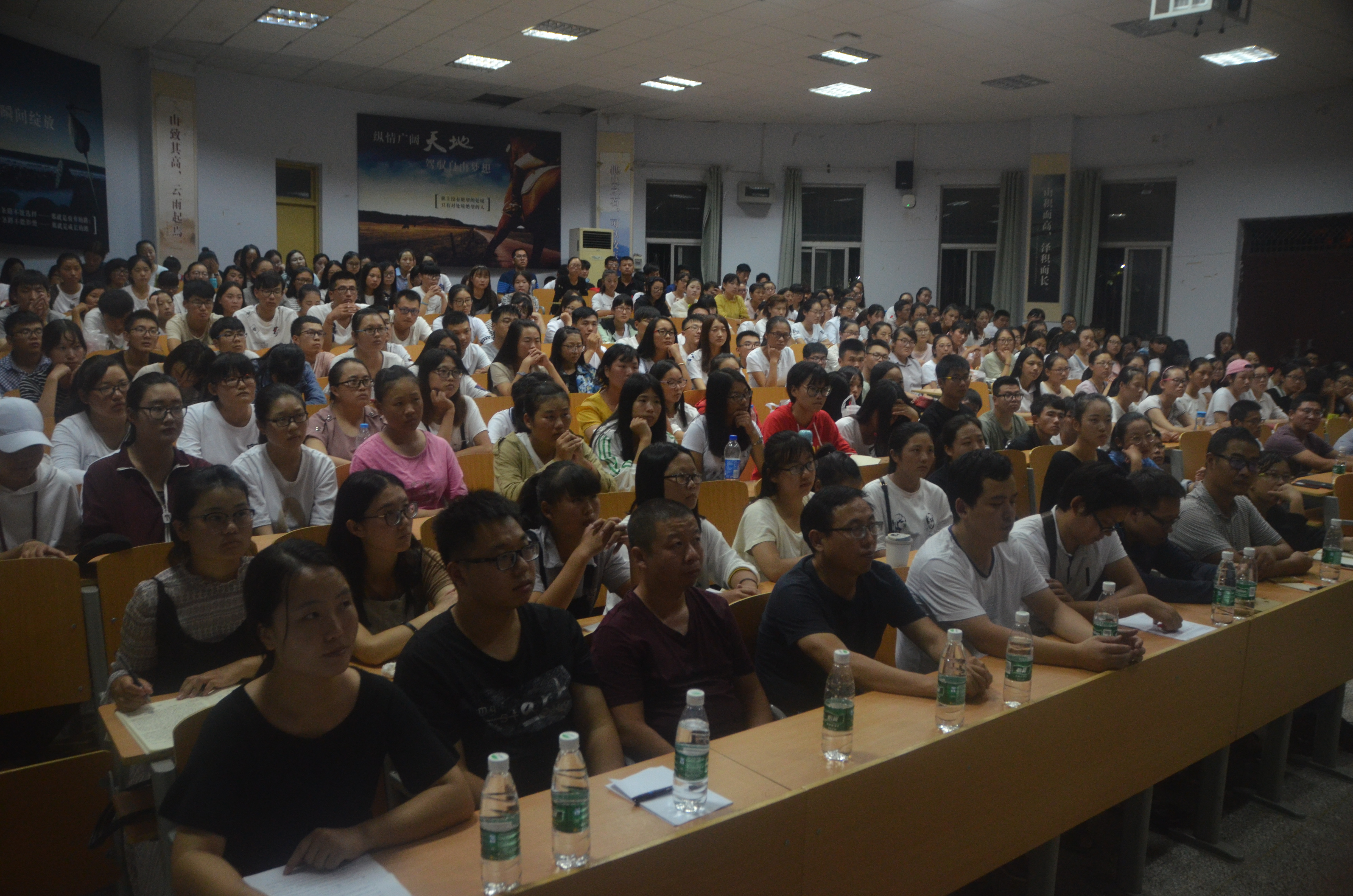 9月18日晚,化学化工学院于文化路校区电子电气工程学院楼报告厅举行了“2017级新生开学典礼暨入学教育大会”,永利23411集团党总支书记韩忠民、院长瞿鹏、党总支副书记刘瑛、副院长孟团结、团总支书记李龙梅、办公室主任姬红彬、教学办公室主任胡春华、教师代表张付力以及各年级辅导员、各班班主任出席了此次会议,永利23411集团新生各班带班班主任及2017级全体新生参加了此次会议,大会由副书记刘瑛主持。
