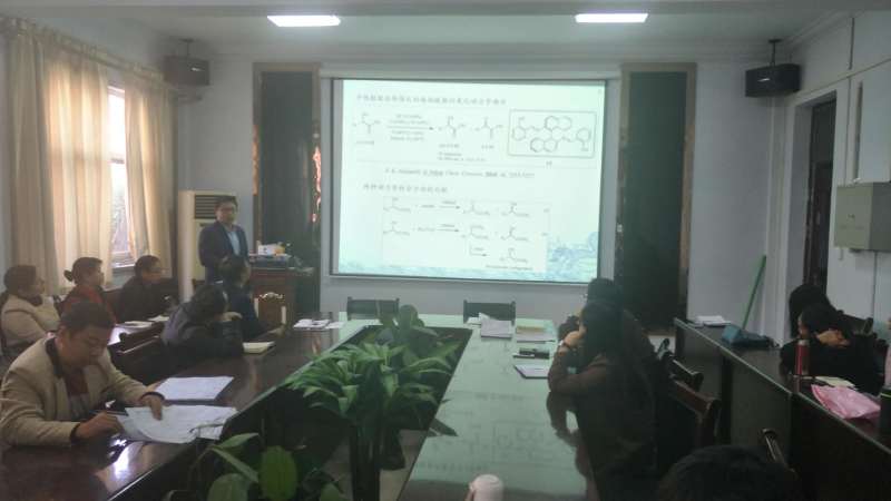2017年10月27日下午,永利23411集团教师张宇恒博士在文化路校区7号楼院会议室做了题为《扁桃酸酯的动力学拆分及催化不对称MIRC反应研究》的学术报告会。报告会由院长瞿鹏主持,化学化工学院全体老师参加了报告会。