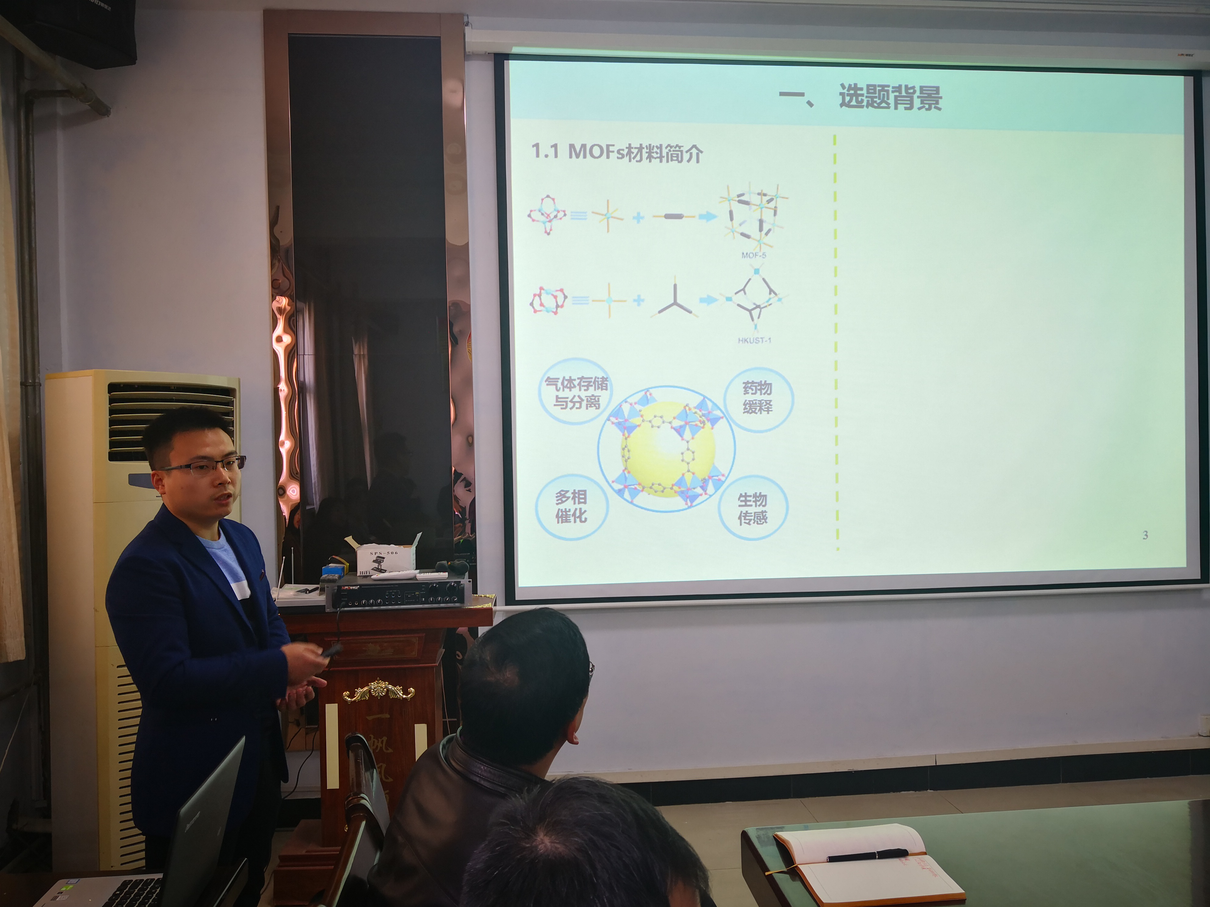 2018年04月08日下午,化学化工学院教师张建伟博士在文化路校区7号楼学院会议室做了题为《高稳定性三核簇基金属-有机骨架材料的设计、合成及气体吸附分离性能研究》的学术报告会。化学化工学院全体院领导及教师参加了报告会,报告会由周艳丽副院长主持。