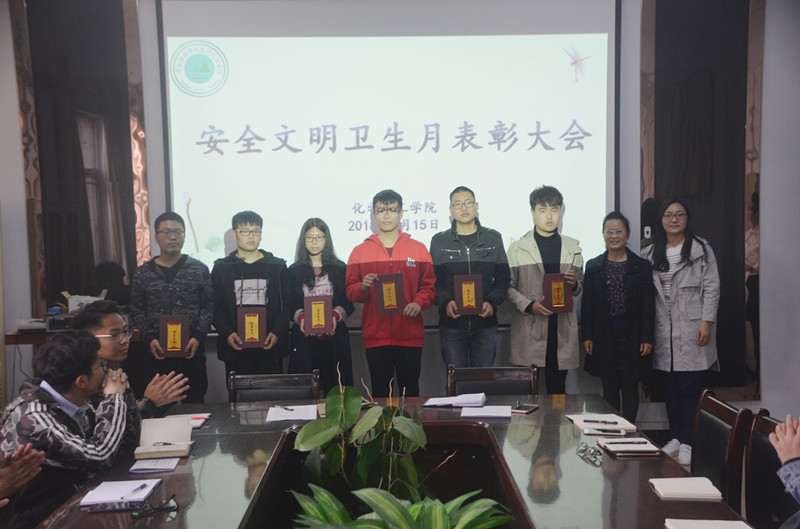 4月15日下午17:00,化学化工学院于文化路校区7号楼院会议室召开安全文明卫生月表彰大会。学院党总支副书记刘瑛、团总支书记李龙梅出席,部分学生干部以及全体受表彰人员参加了本次大会,大会由李龙梅老师主持。