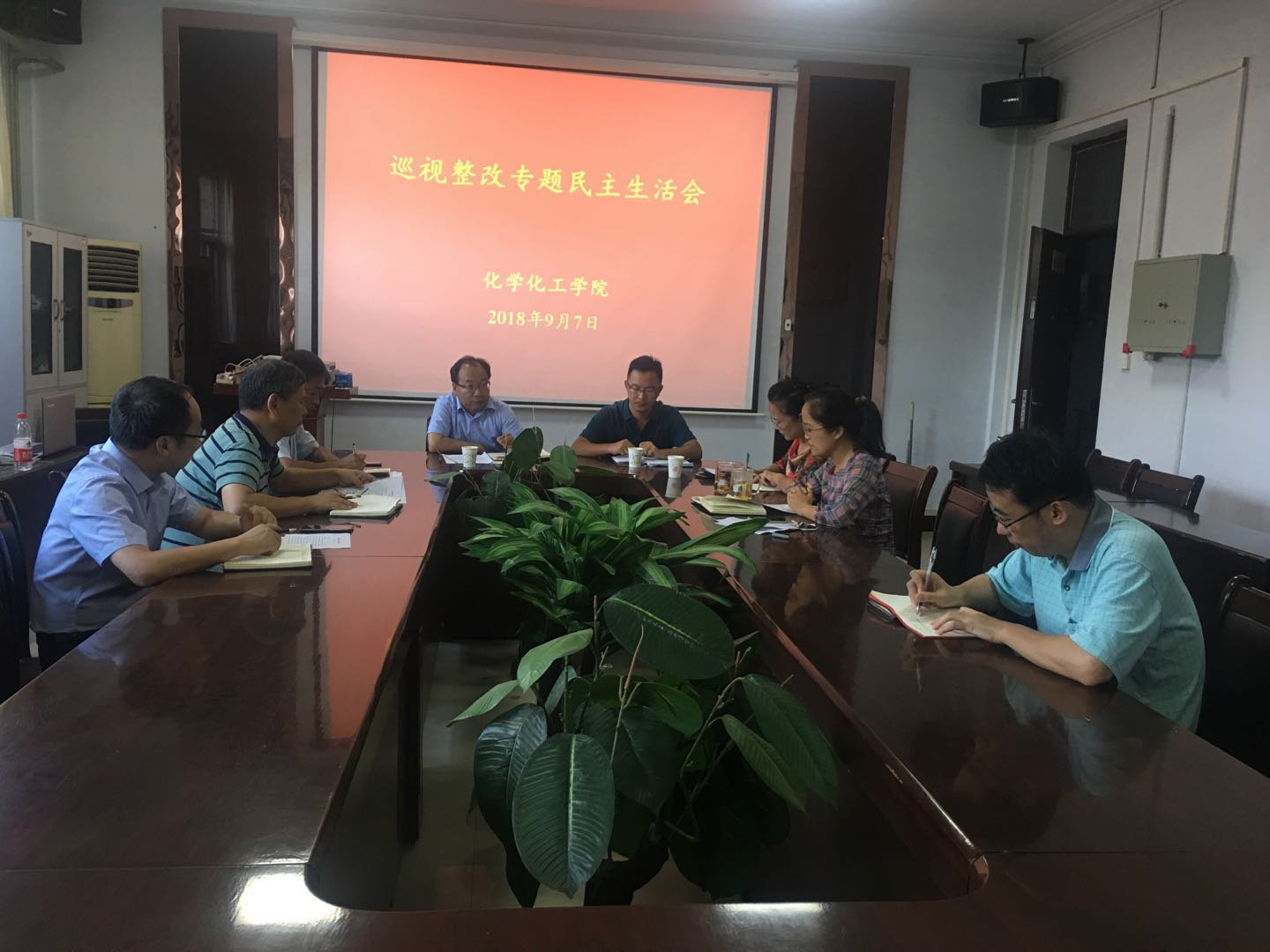 韩忠民书记首先汇报了本次巡视整改专题民主生活会的准备情况,并代表化学化工学院领导班子作对照检查,认真查摆化学化工学院领导班子在学习贯彻习近平新时代中国特色社会主义思想和党的十九大精神、践行“四个意识”、抓党建思想认识、选人用人、党内政治生活、落实意识形态责任制、脱贫攻坚工作、全面从严治党、对巡视整改态度等方面存在的问题,深刻剖析了问题产生的原因,明确提出了下一阶段的努力方向和整改措施。