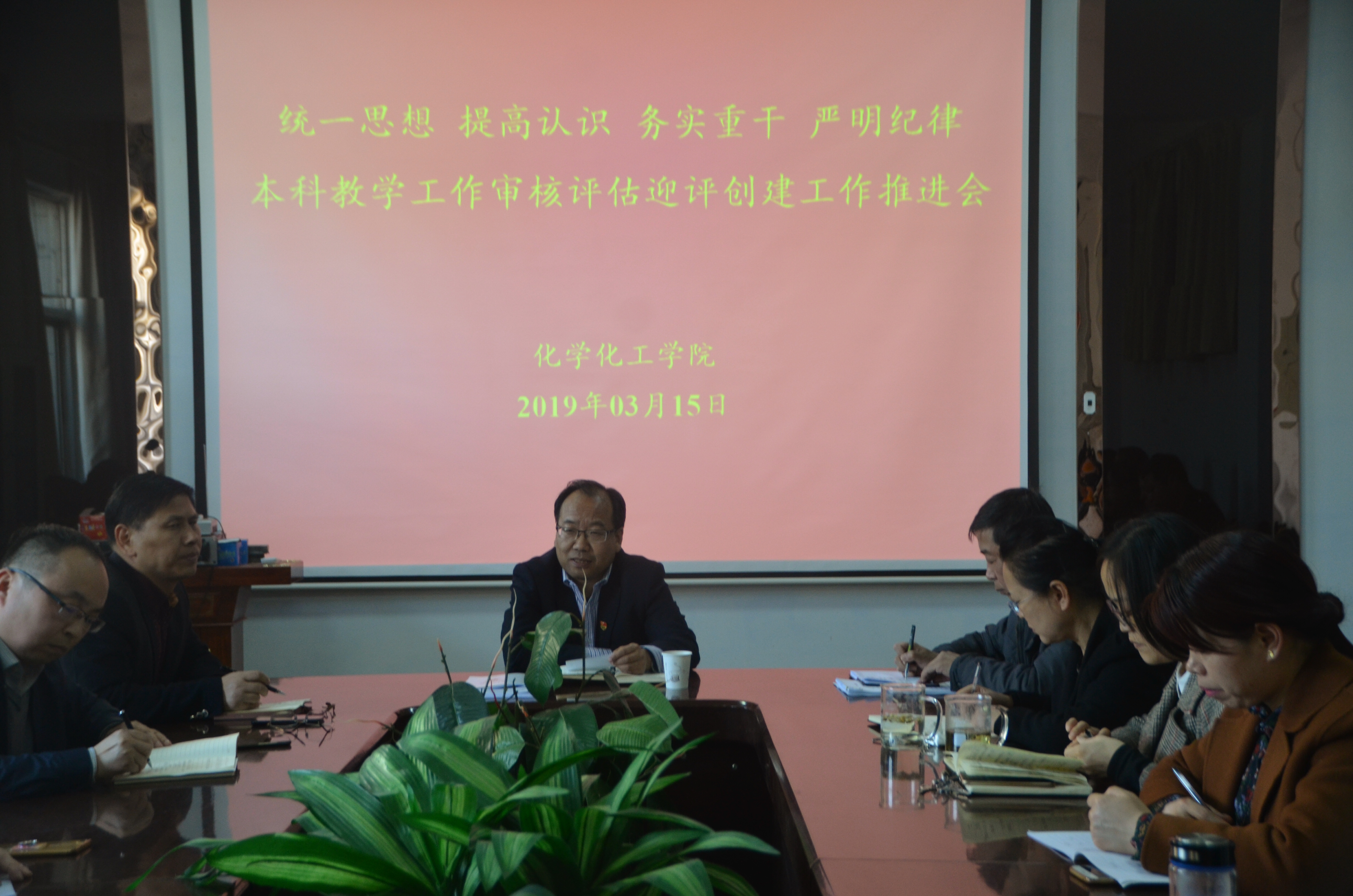 3月15日下午郭文佳在化学化工学院会议室为全体教职工作了关于如何迎接审核评估的辅导报告。郭文佳从①充分理解审核评估重大意义;②审核评估的指导思想、重点、内容、方式方法;③审核评估指标体系及我校现状;④务实重干,做好各项迎评工作;⑤严明纪律,确保达到审核评估目标等五个方面对全体教职工进行了针对性的辅导。报告期间郭文佳强调,评估关系每位师生、关系学校全局,全体师生员工要高度重视本科教学工作审核评估,迎评工作已进入倒计时,要求化学化工学院全体师生员工必须进一步转状态、绷紧弦、提质量、浓氛围,教风学风上再发力、再抓实。做好分内事,以周密的部署、密切的配合、高效的工作迎接审核评估。