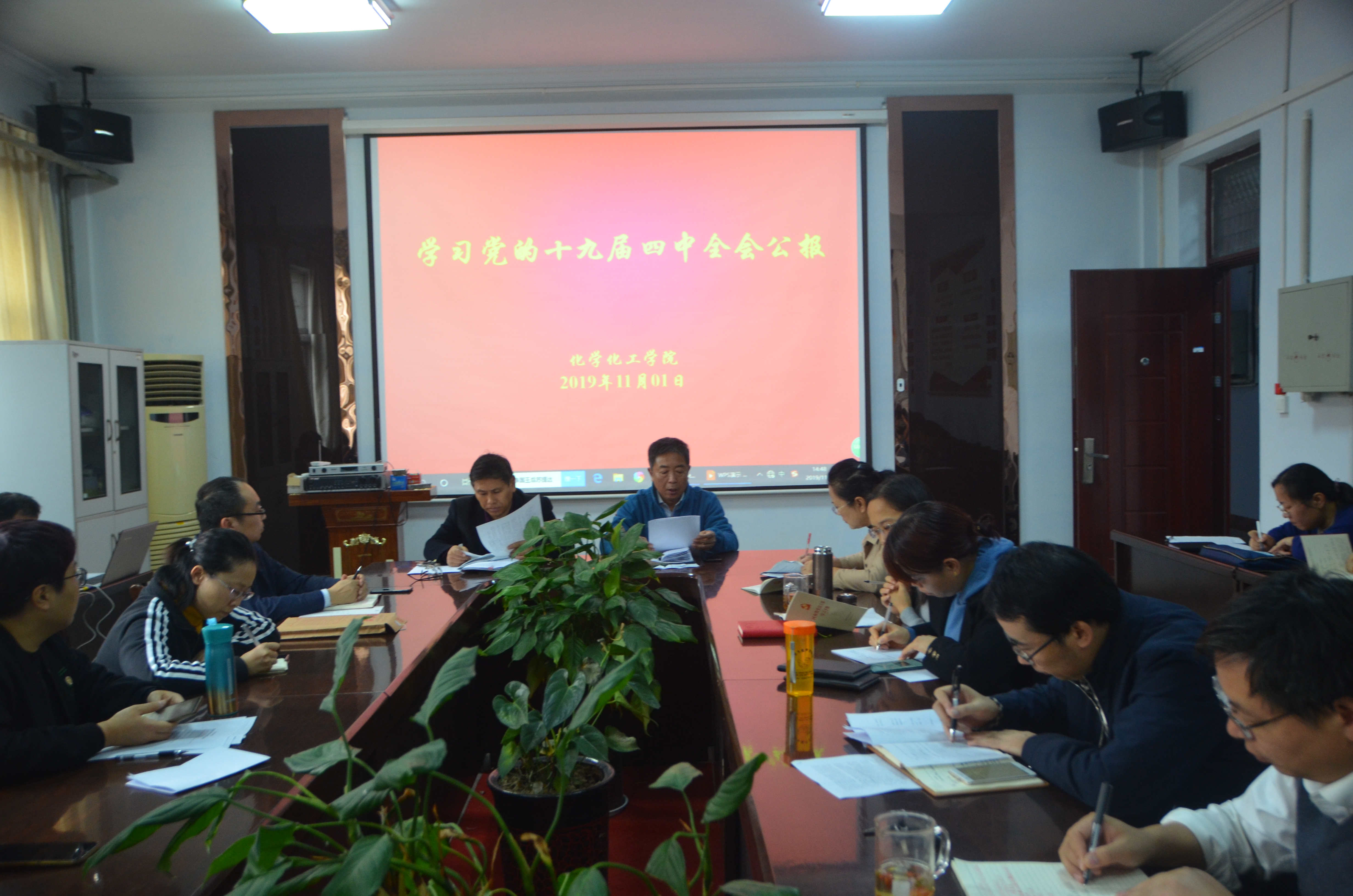 为深入学习党的十九届四中全会精神。11月1日下午,化学化工学院于睢阳校区7号楼会议室召开“学习党的十九届四中全会公报”会议。化学化工学院全体教职工参加,会议由党总支书记韩忠民主持。