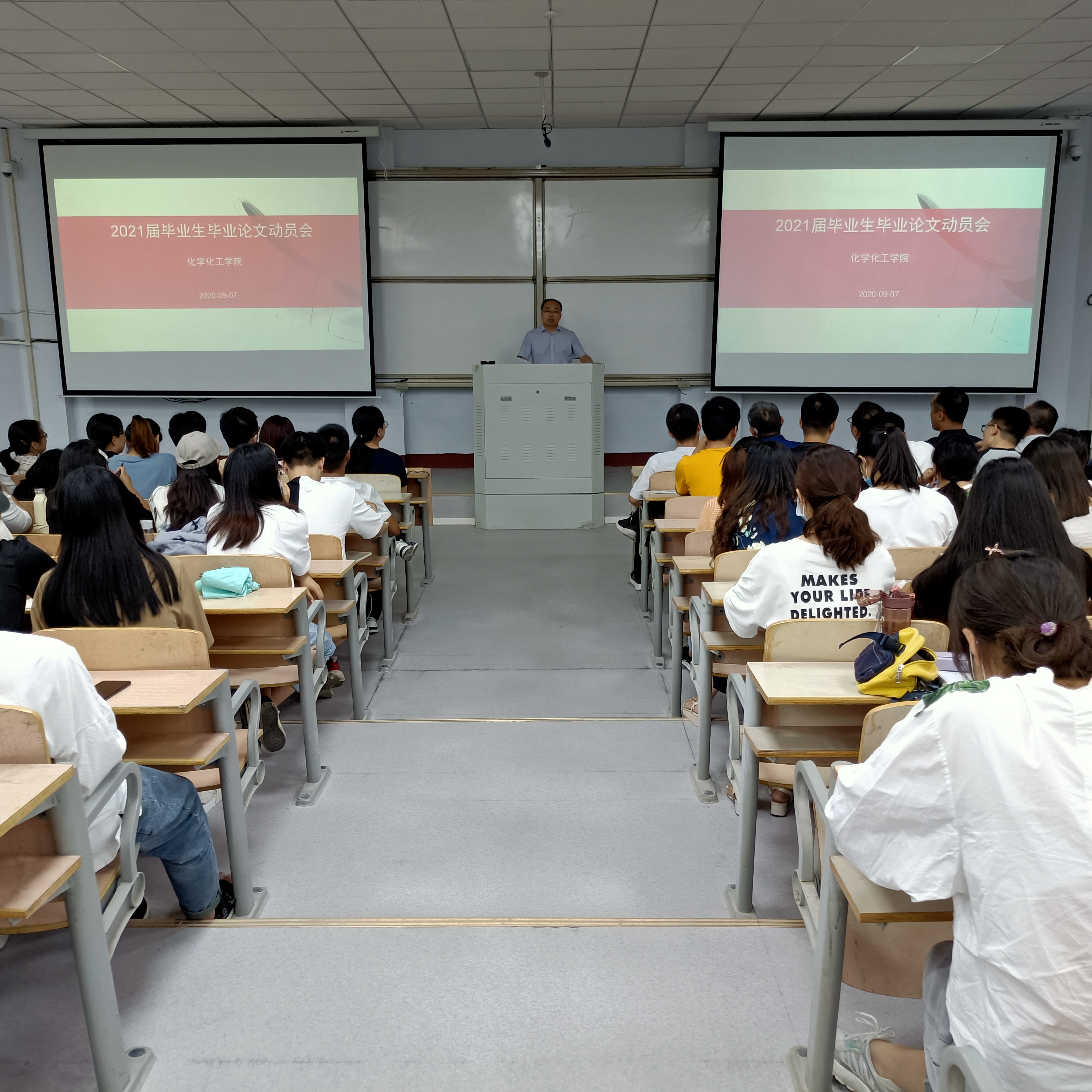 9月7下午,化学化工学院组织召开了2021届毕业生毕业论文动员会和化学教育专业校内实习动员会。教学办公室人员、14名教育实习指导老师、辅导员及全体2021届毕业生参加会议。化学化工学院副院长孟团结主持会议。会议分两个阶段进行。