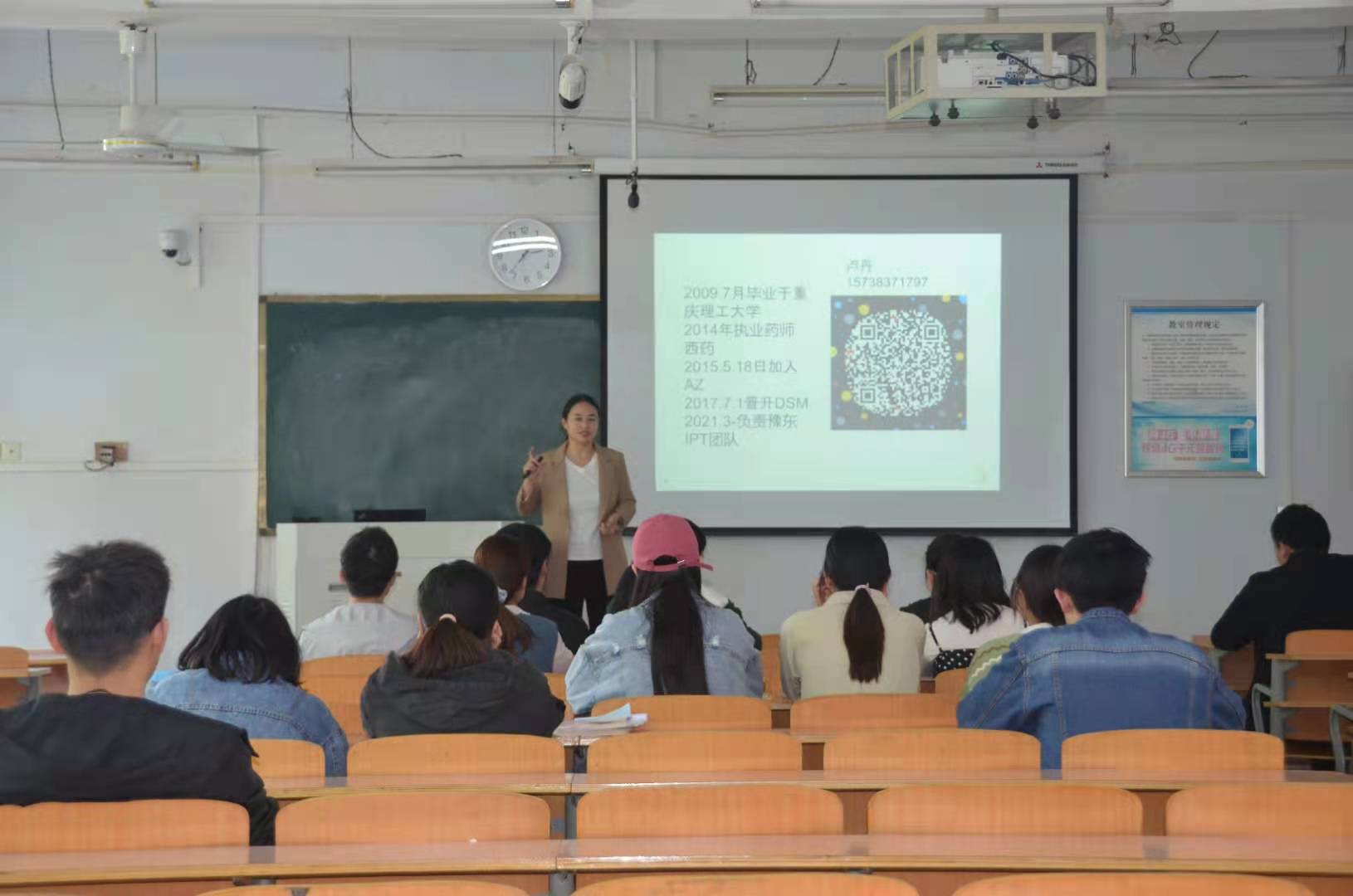 宣讲会上,阿斯利康公司卢丹经理就公司发展状况、未来前景以及各个岗位职业发展规划等问题向同学们作了详细介绍,并针对当前药品销售市场以及研发历程作了进一步的分析报告。本着先认清行业再投身的招聘原则,阿斯利康的工作人员与同学们在互动环节上进行了深入的交流,并对同学们提出的问题一一作答。