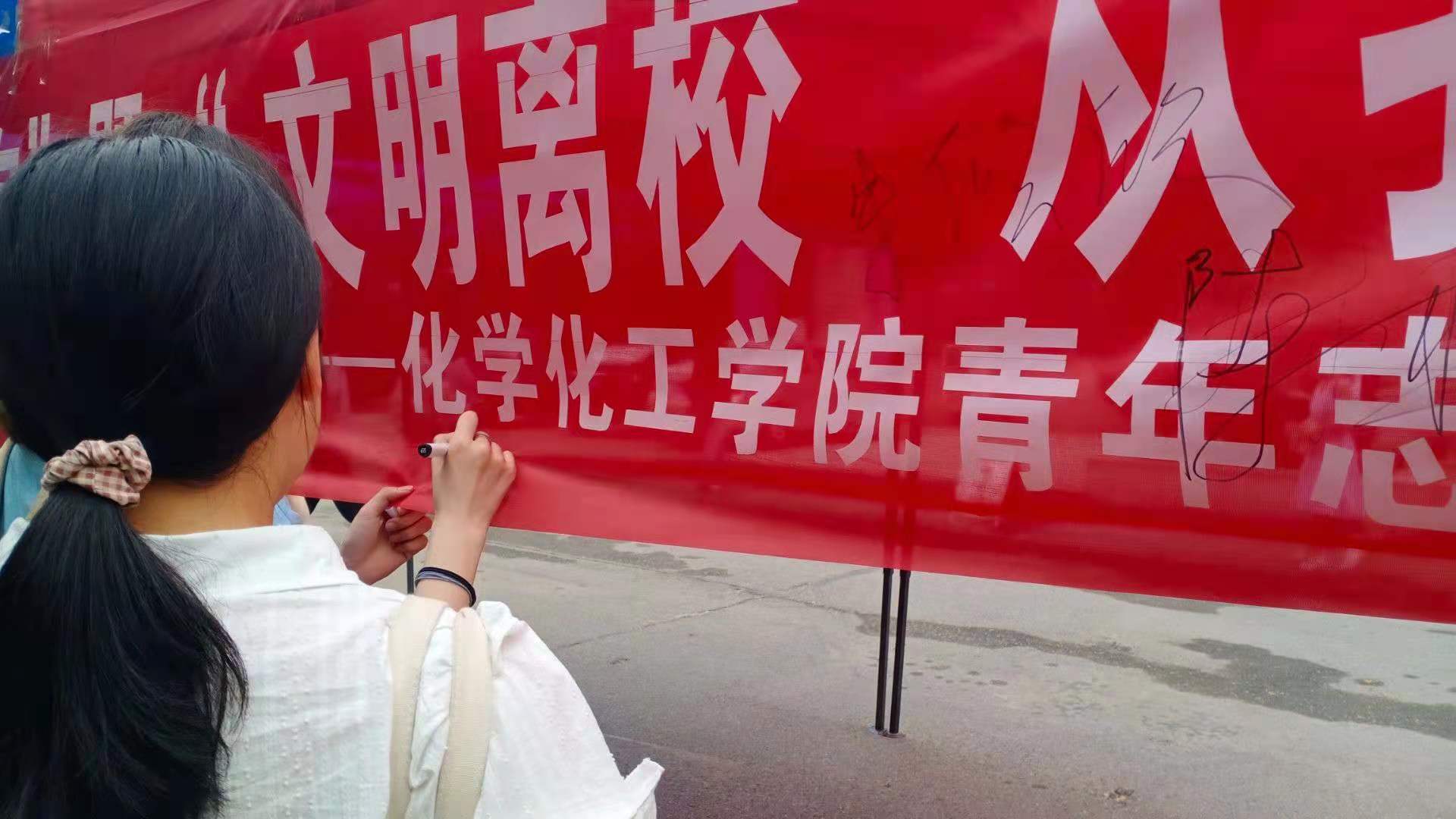 6月2日,化学化工学院青年志愿者协会在睢阳校区图书馆门口举办了“常怀感恩之心 常念感谢有你”暨“文明离校、从我做起”倡议签名活动。