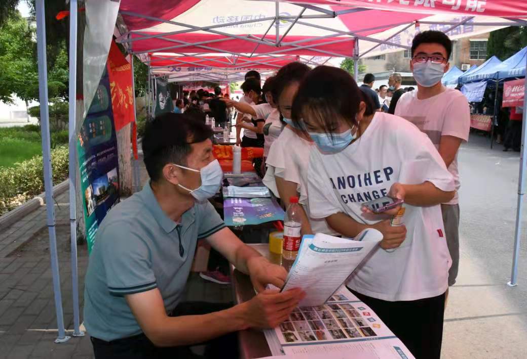 招生宣传现场,李海涛从学校办学历史、学科建设、科研水平、师资力量、人才培养、就业情况以及近三年录取分数等情况向考生和家长进行了耐心的宣讲,并详细解读了我校专业优势、办学特色以及2021年招生政策;姬红彬细致分析了化学化工学院专业特色和师资力量,现场指导考生进行专业选择;李宁娅就志愿填报过程中遇到的问题进行现场解答。