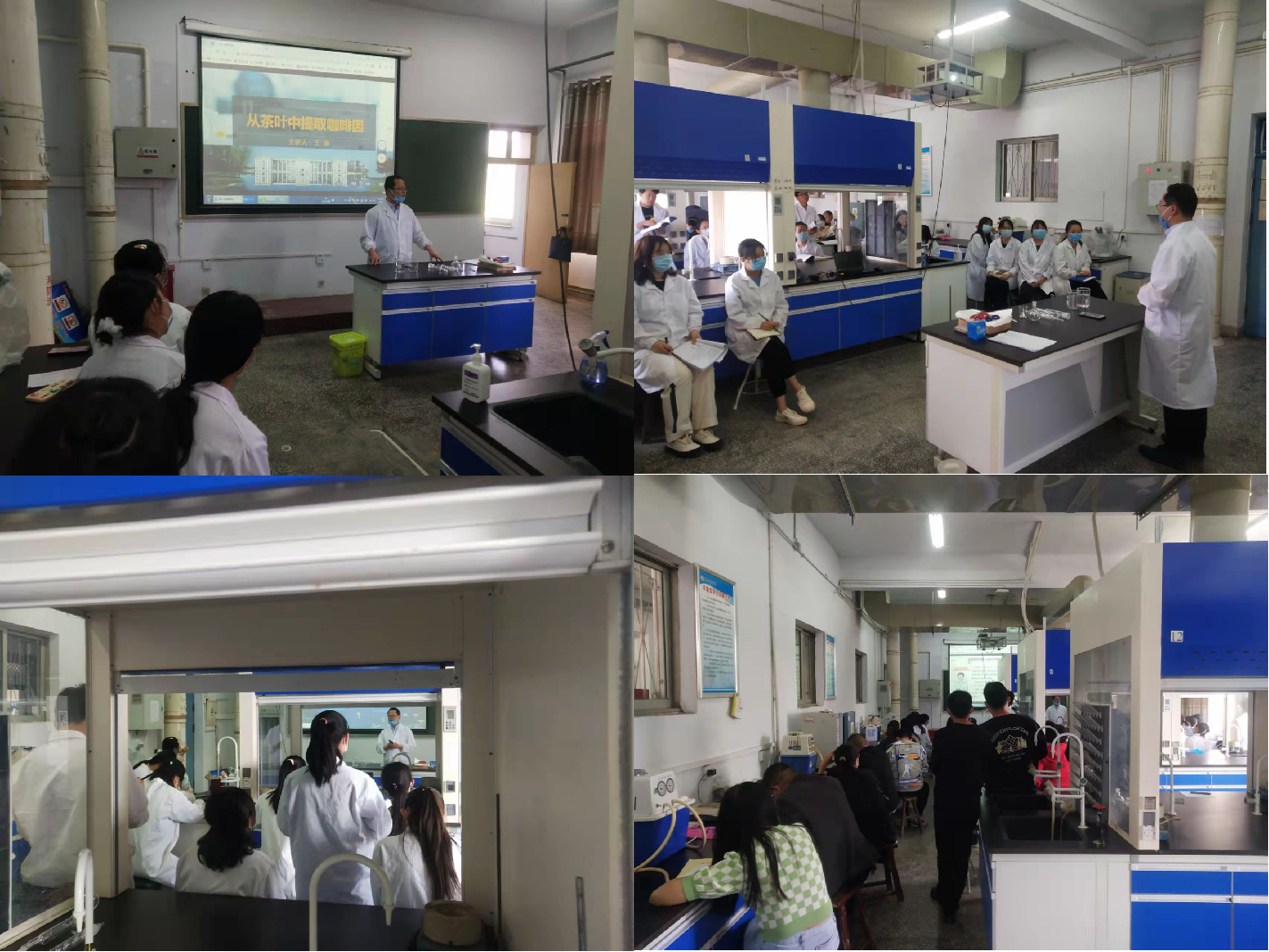 本次公开课的内容是化学与生活模块中的“从茶叶中提取咖啡因”实验,教学流程采用“课前:布置任务点+学生线上预习;课中:随机提问+教师总结;课后:实验报告+问题跟帖讨论”线上线下相结合的模式展开。其中课堂环节王老师引入中国茶文化、咖啡因的临床用途及被列为管制药品的原因、如何从反应装置出发设计绿色化实验项目等知识点,将思政元素与专业知识有机融合、润物细无声。另外为了更好检测同学们的预习效果,课中借助泛雅平台随机抽签、抢答、主题讨论等方式进行任务点的汇报。最后,王老师针对同学们的课堂讲解进行查漏补缺、拓展延伸。整个课程内容设计巧妙,充分调动了学生的主观能动性。课后,观摩教师对本次公开课的课堂组织、课程设计、思政元素融入、课堂活动、学生参与形式等内容展开了交流和讨论。