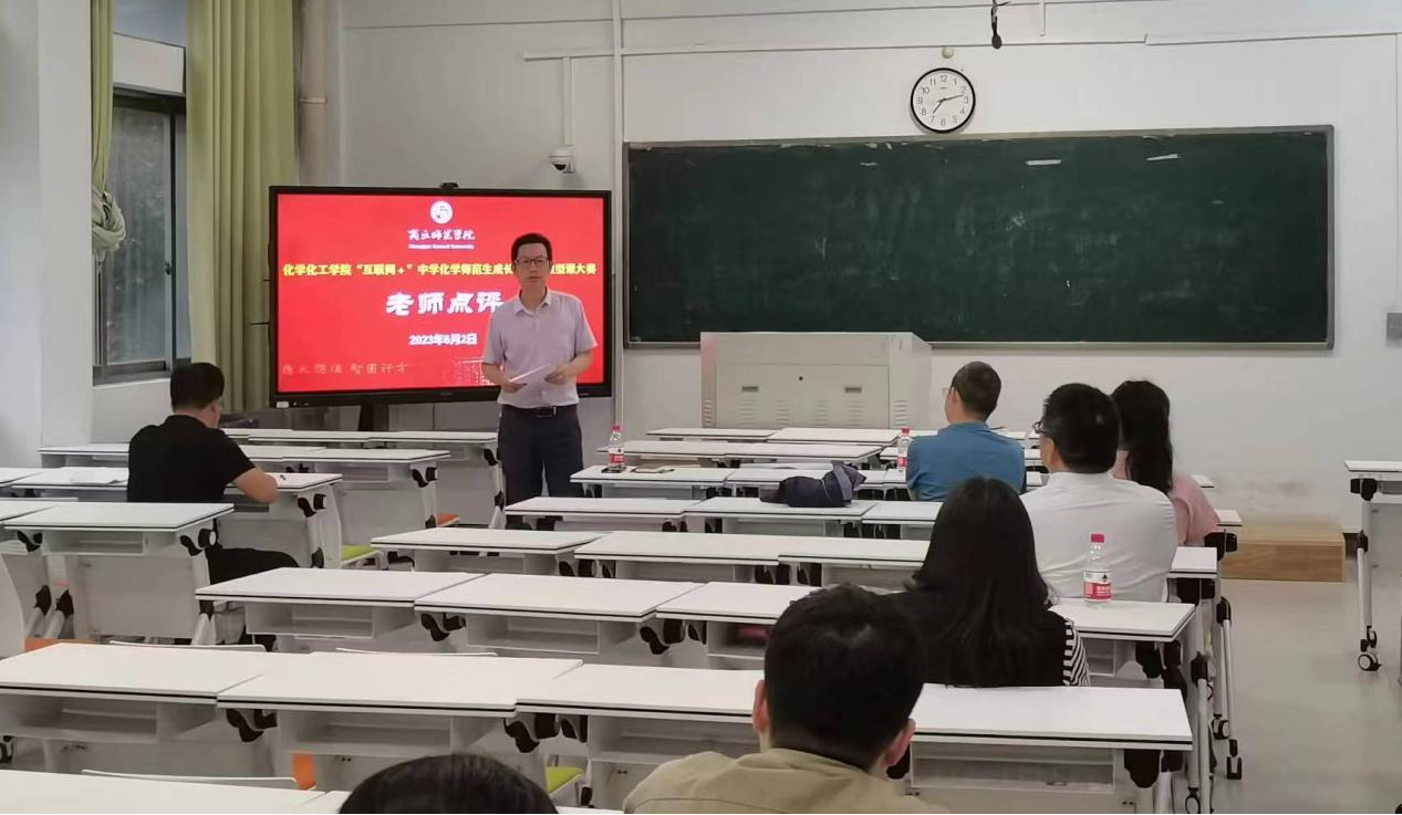 最后,商丘市一中刘飞老师代表评委老师对学生的精彩表现进行了认真点评。他认为微型课作为教师教学基本功的全方位体现,对于促进教师专业化发展具有重要作用。本次微型课比赛既“微”出了创意,也“微”出了精彩,展示了化学专业师范生的良好素养。