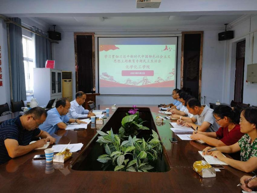 按照校党委统一安排,9月3日上午,化学化工学院党委召开学习贯彻习近平新时代中国特色社会主义思想主题教育专题民主生活会。学校主题教育专题民主生活会第六督导组组长、副校长郭文佳同志、督导组成员机关党委书记李晔和组织部教育科科长李可刚出席指导民主生活会。学院党委书记李海涛、院长张银堂、副书记张颜梅、副院长王涛参加会议,河南省生物分子识别与传感重点实验室执行主任周艳丽、副主任朱旭以及河南省新能源电池材料工程技术研究中心主任魏伟列席会议。民主生活会由学院党委书记李海涛主持。
