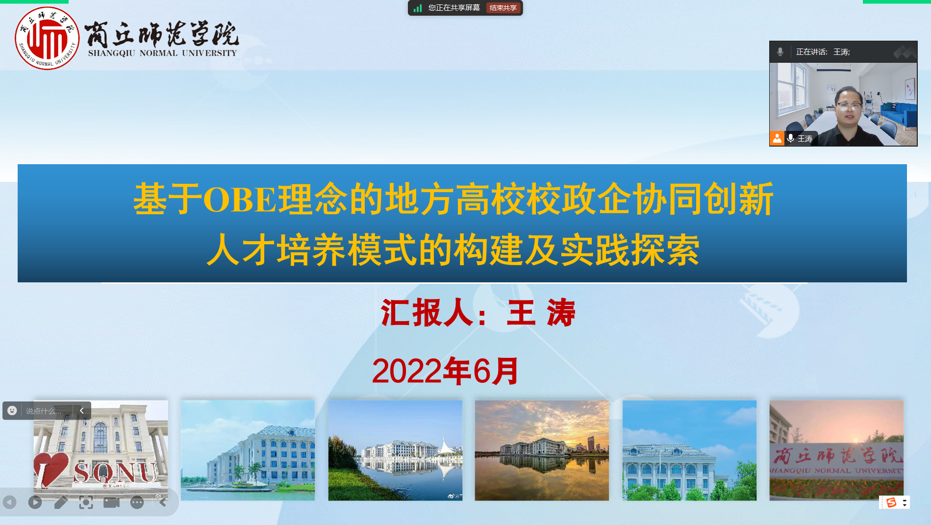 2022年6月10日,应朝阳师范高等专科学校邀请,永利23411集团副院长王涛利用腾讯会议以《基于OBE理念的地方高校校政企协同创新人才培养模式的构建及实践探索》为题为生化工程系老师开展指导交流工作。