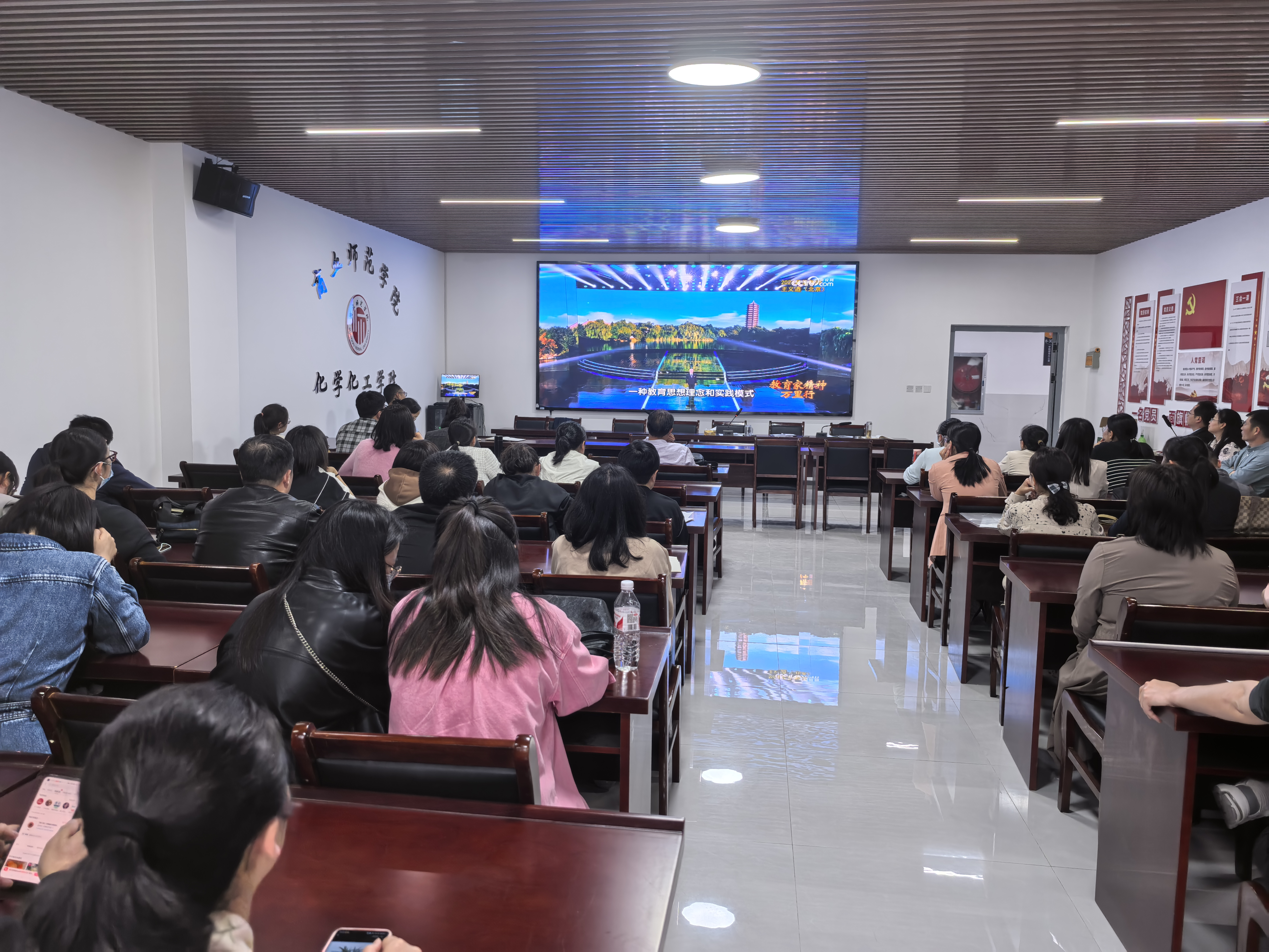 为扎实推进师德师风建设,大力弘扬新时代教育家精神,全面提升教师队伍素质。4月11日,化学化工学院全体教师在工科实训楼B-309会议室开展了“教育家精神万里行·最美教师展播学习”活动。
