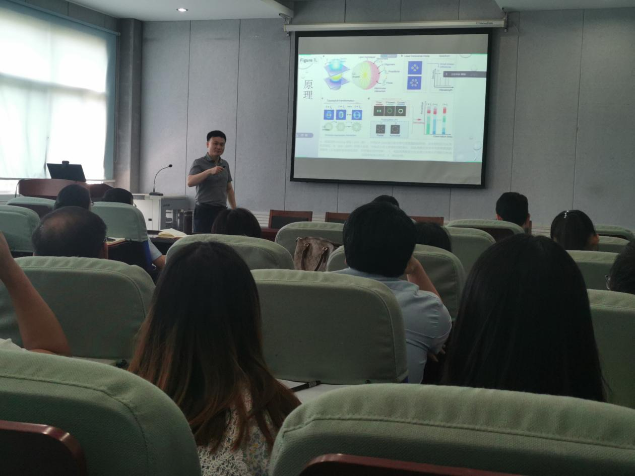研讨会上,除了研究生同学们分享交流了自己近期的研究成果外,任建华博士和舒方杰教授分别做了题为“Analytics tools in biomedical research”和“光学微腔助力阿尔茨海默病诊断”的学术报告。报告结束后,两位报告人详细回答了老师们提出的问题,就细胞分析相关技术和方法及光学微腔的形成机理等方面作了进一步的交流和探讨。两个交叉学科的精彩报告使师生深受启发,为促进开展交叉学科研究打下了基础。
