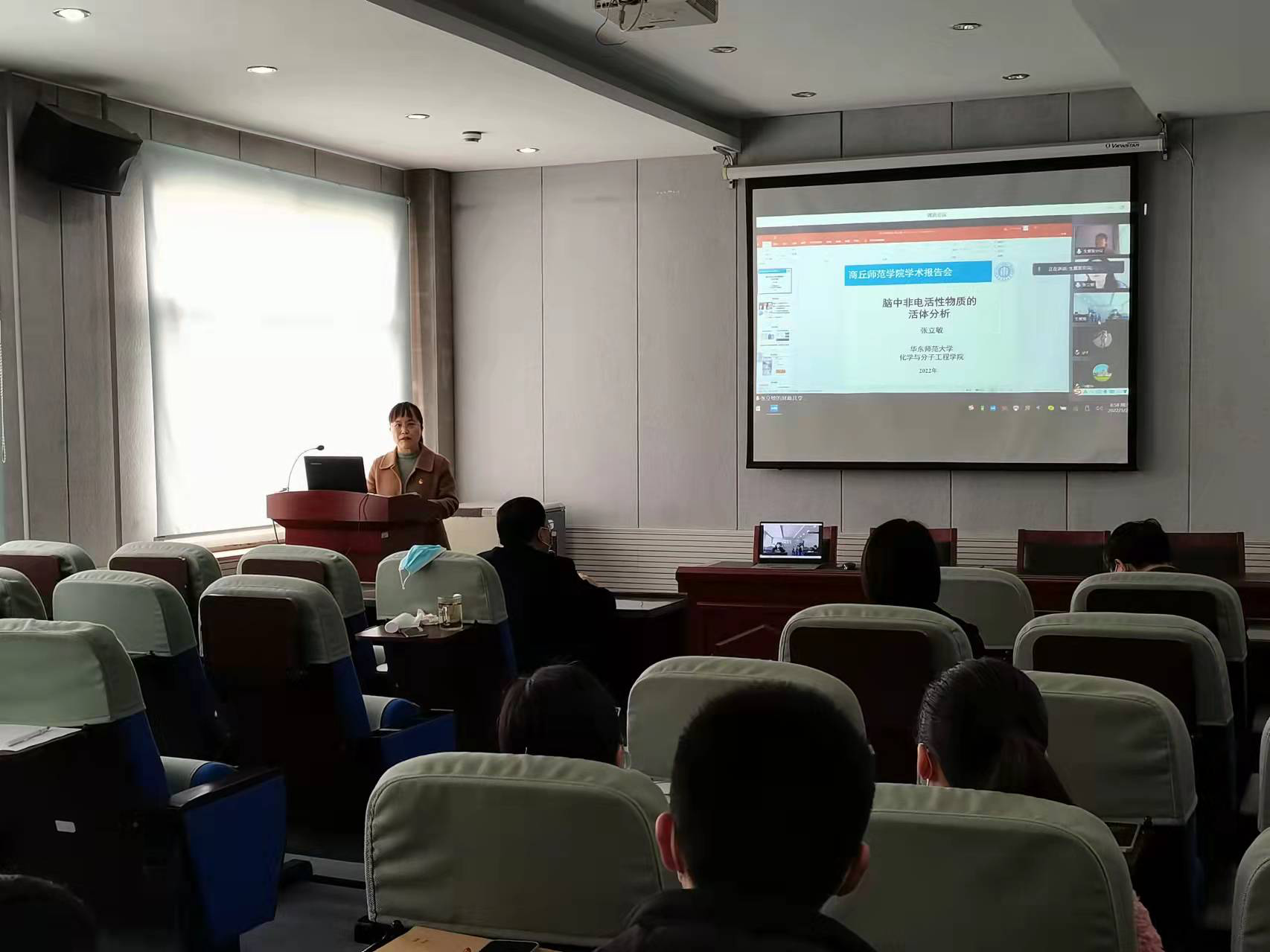 3月26日,应化学化工学院河南省生物分子识别与传感重点实验室邀请,华东师范大学博士生导师张立敏教授通过腾讯会议作题为“脑中非电活性物质的活体分析”的学术报告。本次报告分为线下和线上两个会场。副校长徐茂田、科研处长刘澜涛出席报告会,重点实验室全体教师和研究生一起在线上或线下参加了本次报告会。报告会由重点实验室执行主任周艳丽主持。