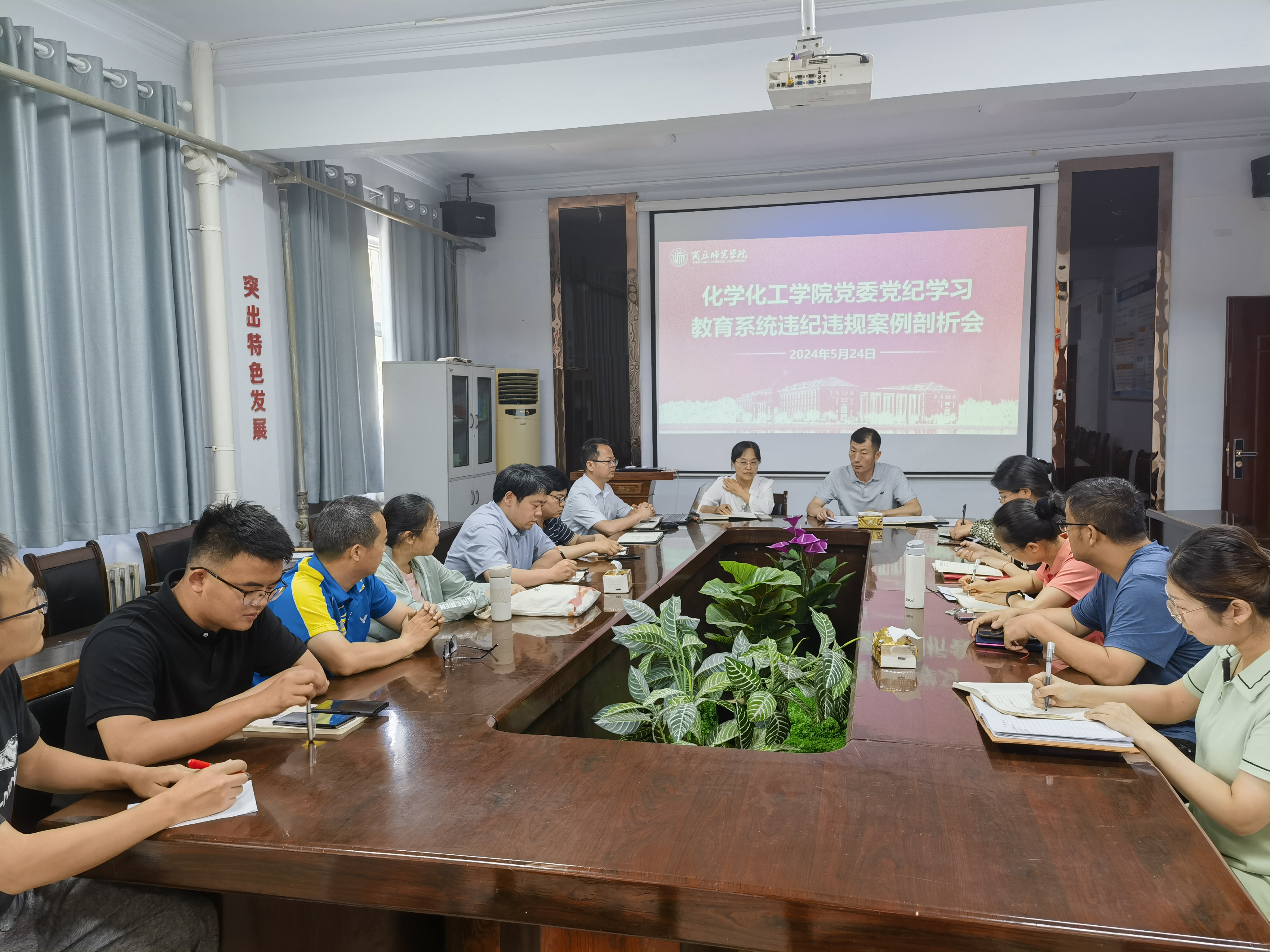 为强化学院党员干部的纪律意识和规矩意识,推动党纪学习教育走深走实,5月24日,化学化工学院党委在学院会议室召开党纪学习教育违纪违规案例剖析会。会议由学院党委书记李海涛主持,学院领导班子及全体科级干部参加会议。
