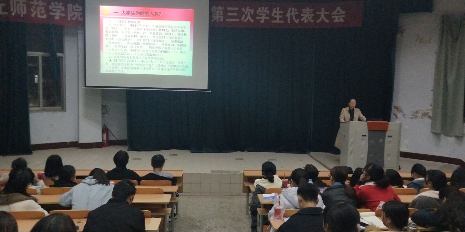 讲座结束后,全体19级新生纷纷表示,积极向党组织靠拢,坚定理想信念,不忘初心,牢记使命,及时向党组织作思想汇报,学习党组织精神,坚定不移地跟党走,争取早日入党。