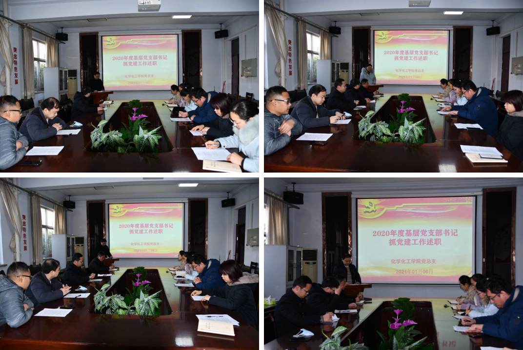1月6日上午,化学化工学院2020年度基层党支部书记抓党建述职评议会在睢阳校区7号楼学院会议室举行。院党总支书记韩忠民,党总副书记刘瑛、副院长孟团结、周艳丽出席会议,各党支部书记和党员代表参加本次会议,会议由韩忠民主持。