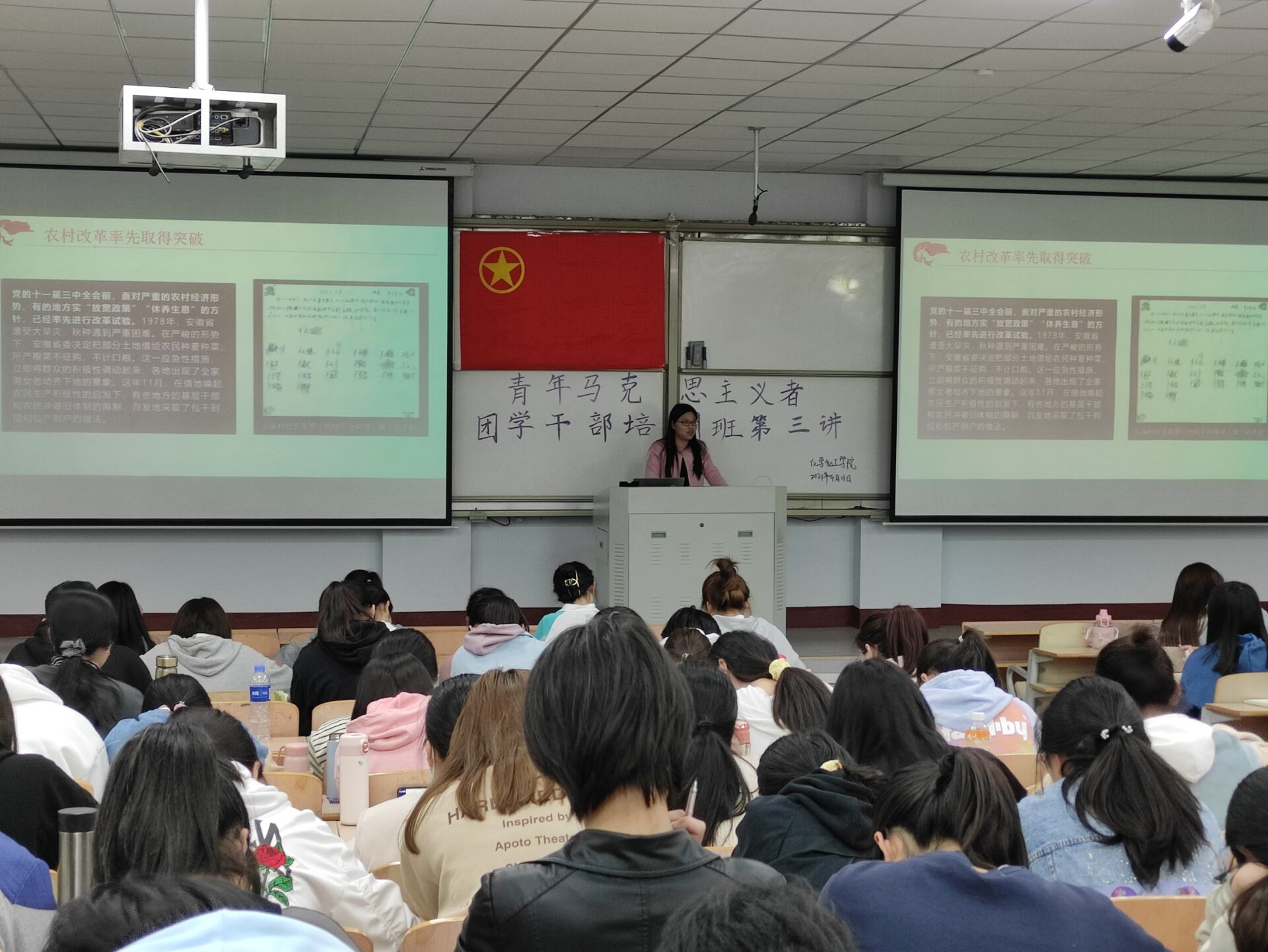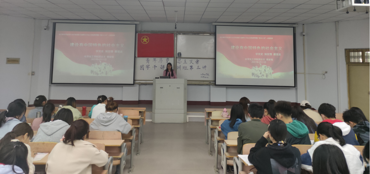 4月11日,化学化工学院于睢阳校区1号教学楼207教师开展“永利23411集团团干党史宣讲进支部暨化学化工学院第四期“青马工程”主题团课(三)——建设有中国特色的社会主义”。化学化工学院团总支副书记郭家瑞主讲,全体学员参加。
