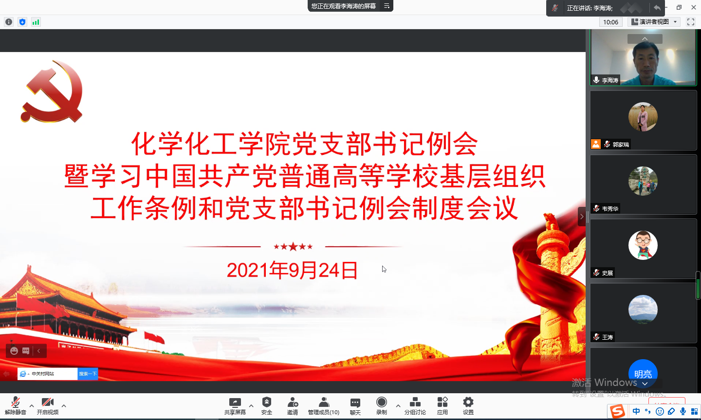 为深入贯彻落实《中国共产党普通高等学校基层组织工作条例》和《永利23411集团党支部书记例会制度》精神,切实推动基层组织工作高质量发展。9月24日,化学化工学院党委召开党支部书记例会,组织党支部书记学习《中国共产党普通高等学校基层组织工作条例》和《党支部书记例会制度》。会议由院党委书记李海涛主持。