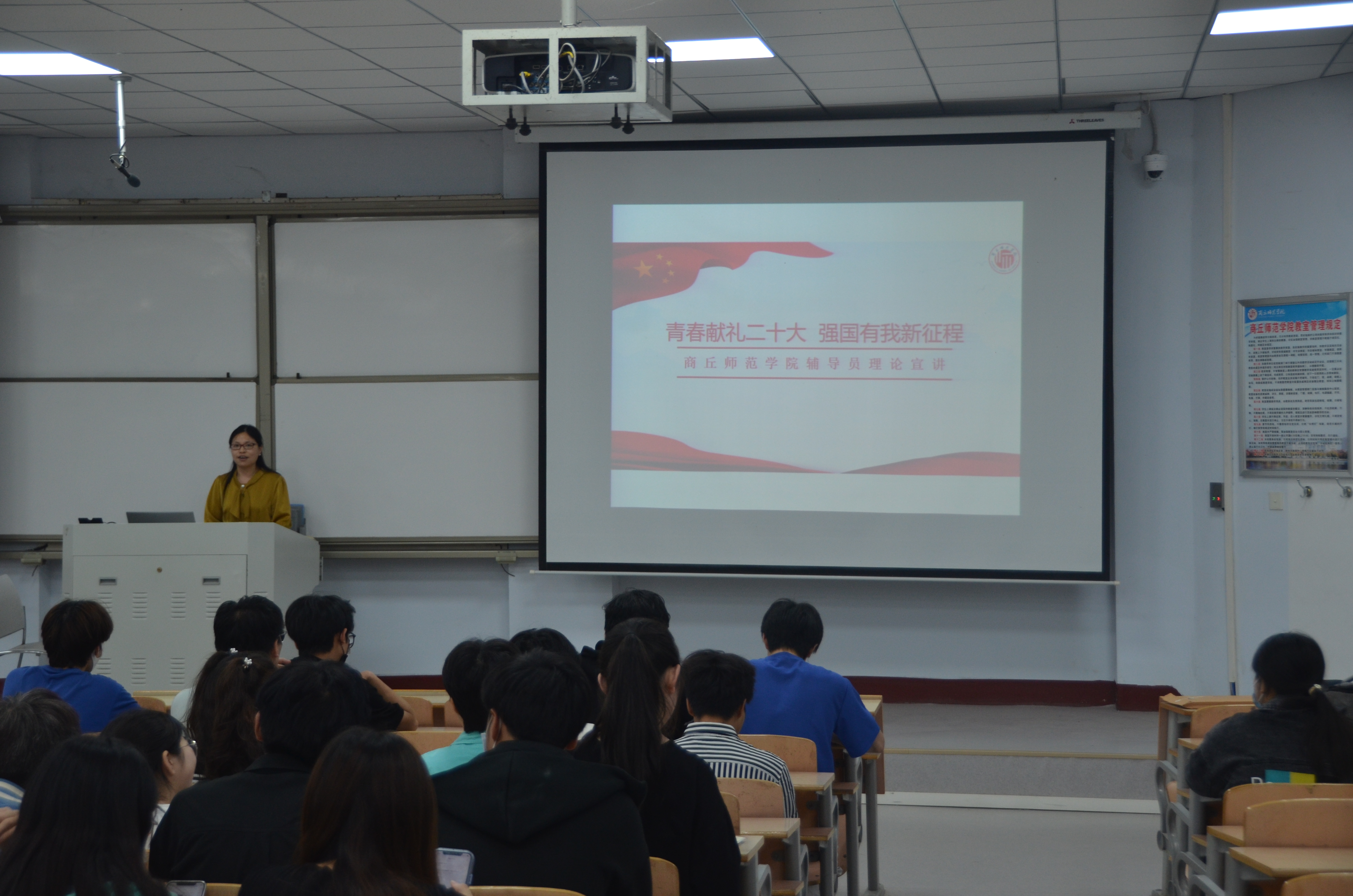 5月25日,化学化工学院于1号教学楼107教室开展了“青春献礼二十大,强国有我新征程”辅导员理论宣讲活动,院团委副书记郭家瑞主讲,21级学生代表参加。