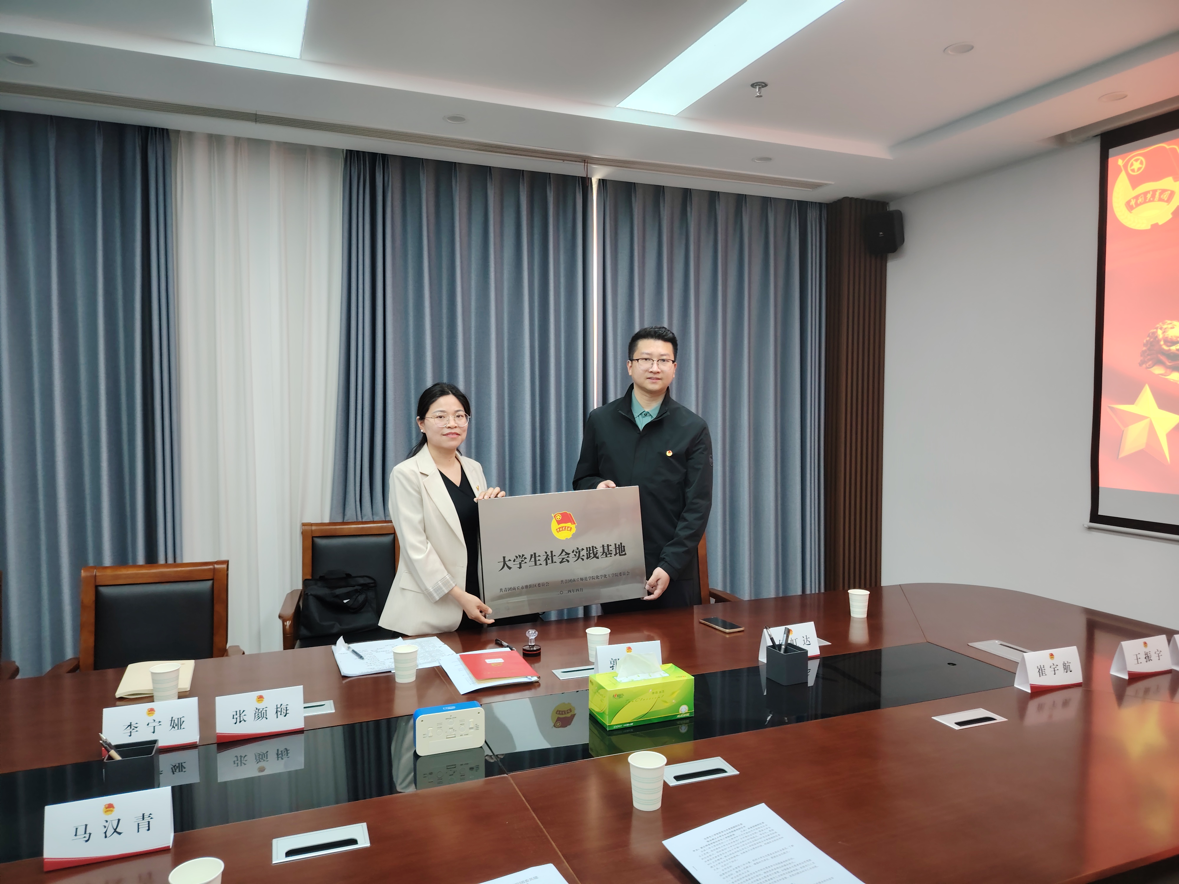 近日,在学院党委大力支持下,学院团委联合共青团睢阳区委建立了大学生社会实践基地,并举行签约仪式。院党委副书记张颜梅、共青团睢阳区委书记何虹达以及化学化工学院团委书记、优秀团员代表、团区委全体工作人员参加签约仪式。