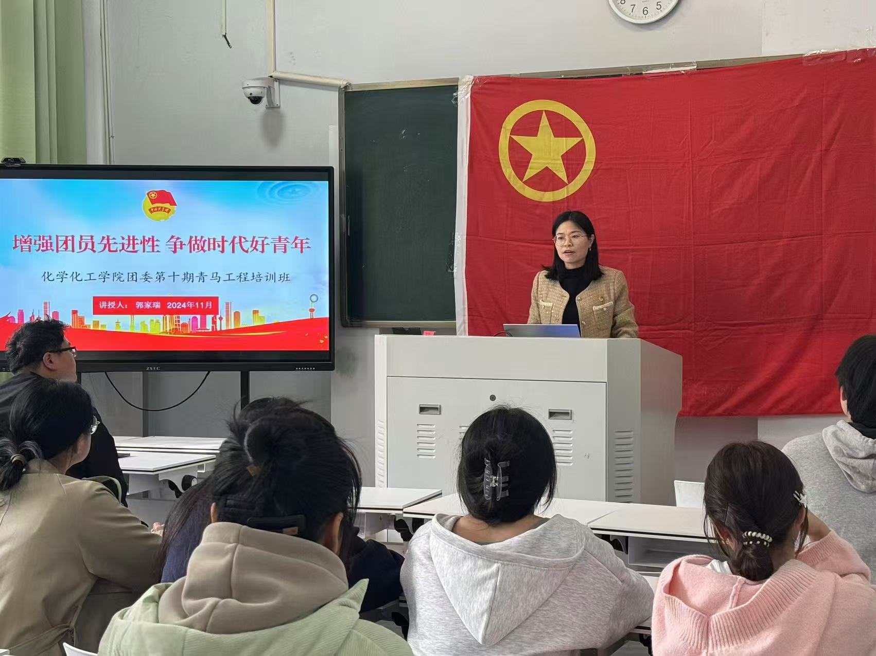 11月2日,化学化工学院第十期“青年马克思主义者”培训班在1号楼107教室举行第二讲,郭家瑞做了题为《增强团员先进性,争做优秀团员》的专题授课,全体培训班成员参加。