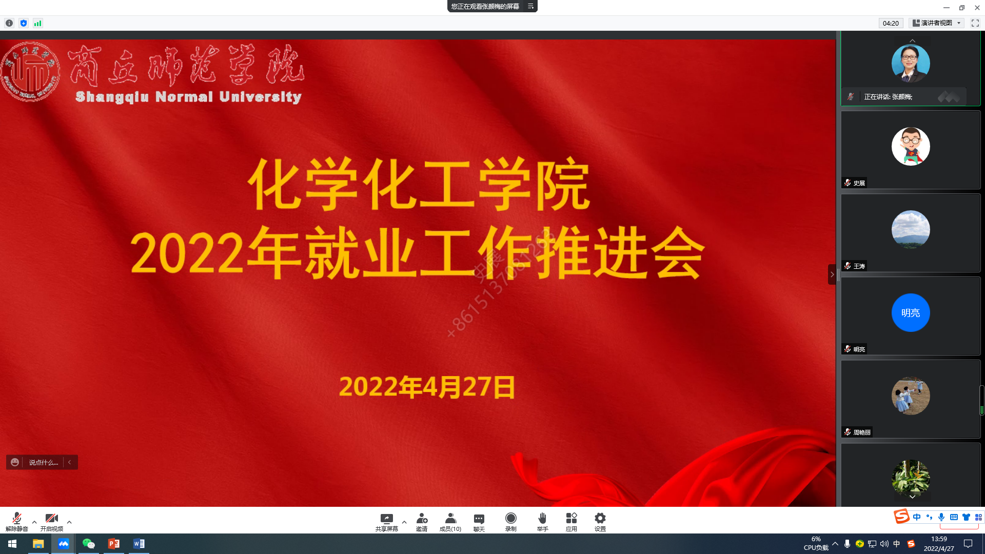为掌握2018级毕业生就业情况,更好地促进永利23411集团学生顺利就业,4月27日,化学化工学院利用腾讯会议举办了2022年就业工作推进会。学院领导参会,全体毕业班班主任、辅导员参加。会议由院党委副书记张颜梅主持。