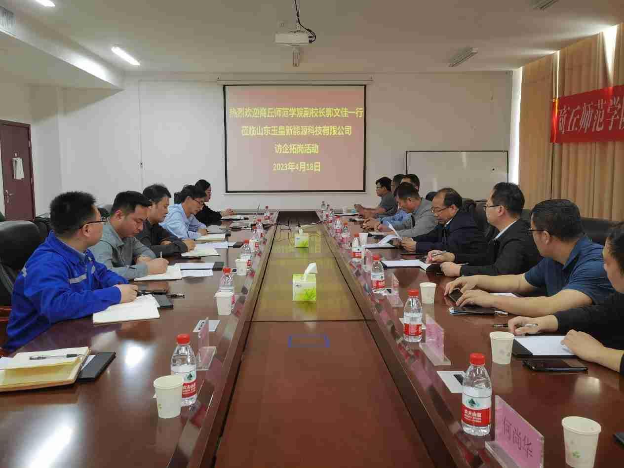 4月18日,副校长郭文佳带领校地合作与服务中心、化学化工学院主要负责人到山东玉皇新能源科技有限公司开展访企拓岗促就业活动和推进共建产业学院工作。