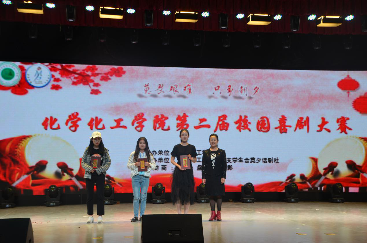 4月19日晚,由化学化工学院主办、团总支学生会莫夕话剧社承办的“第二届校园喜剧大赛”在睢阳校区大礼堂举行。全校各院700余名同学齐聚一堂,共同欣赏精彩的演出。校团委副书记蒯秀丽、化学化工学院党总支副书记刘瑛、化学化工学院团总支书记李龙梅、数学与统计学院的团总支书记姜素华、全体辅导员和部分教师出席本次活动。