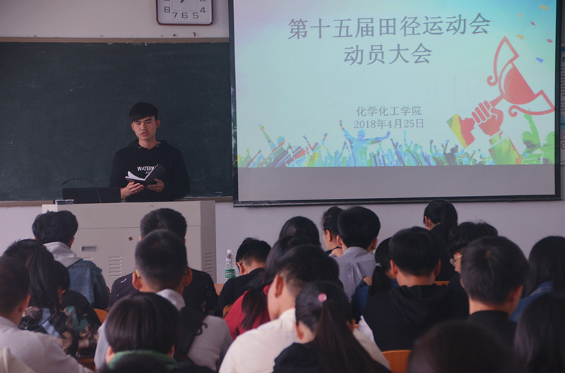 4月25日中午,化学化工学院在文化路校区1#405举行了“第十五届田径运动会动员大会”。化学化工学院党总支副书记刘瑛、团总支书记李龙梅出席会议,团总支、学生会部分成员、青协部分成员、参加运动会的成员及服务人员参与会议,会议由李龙梅主持。