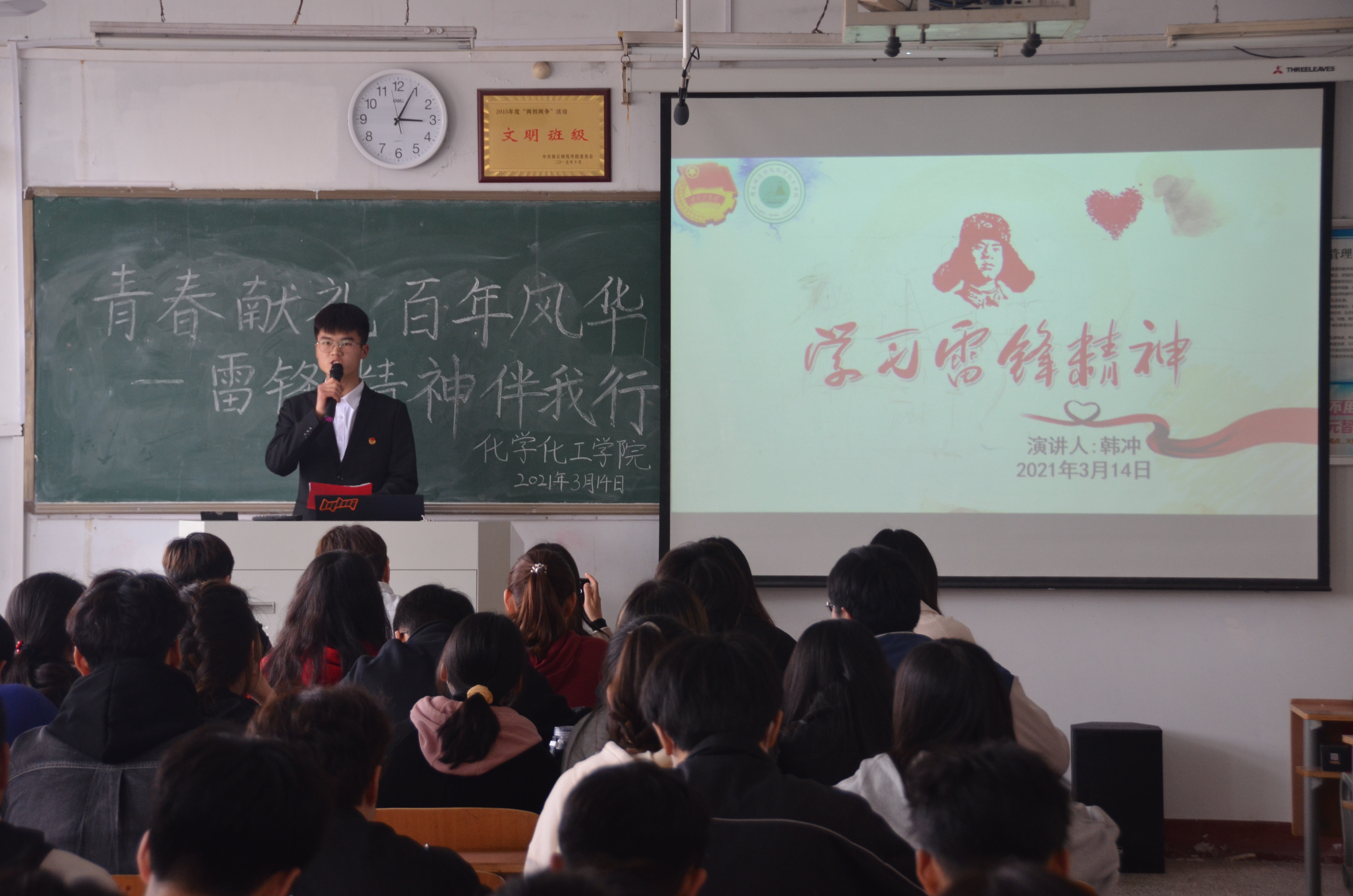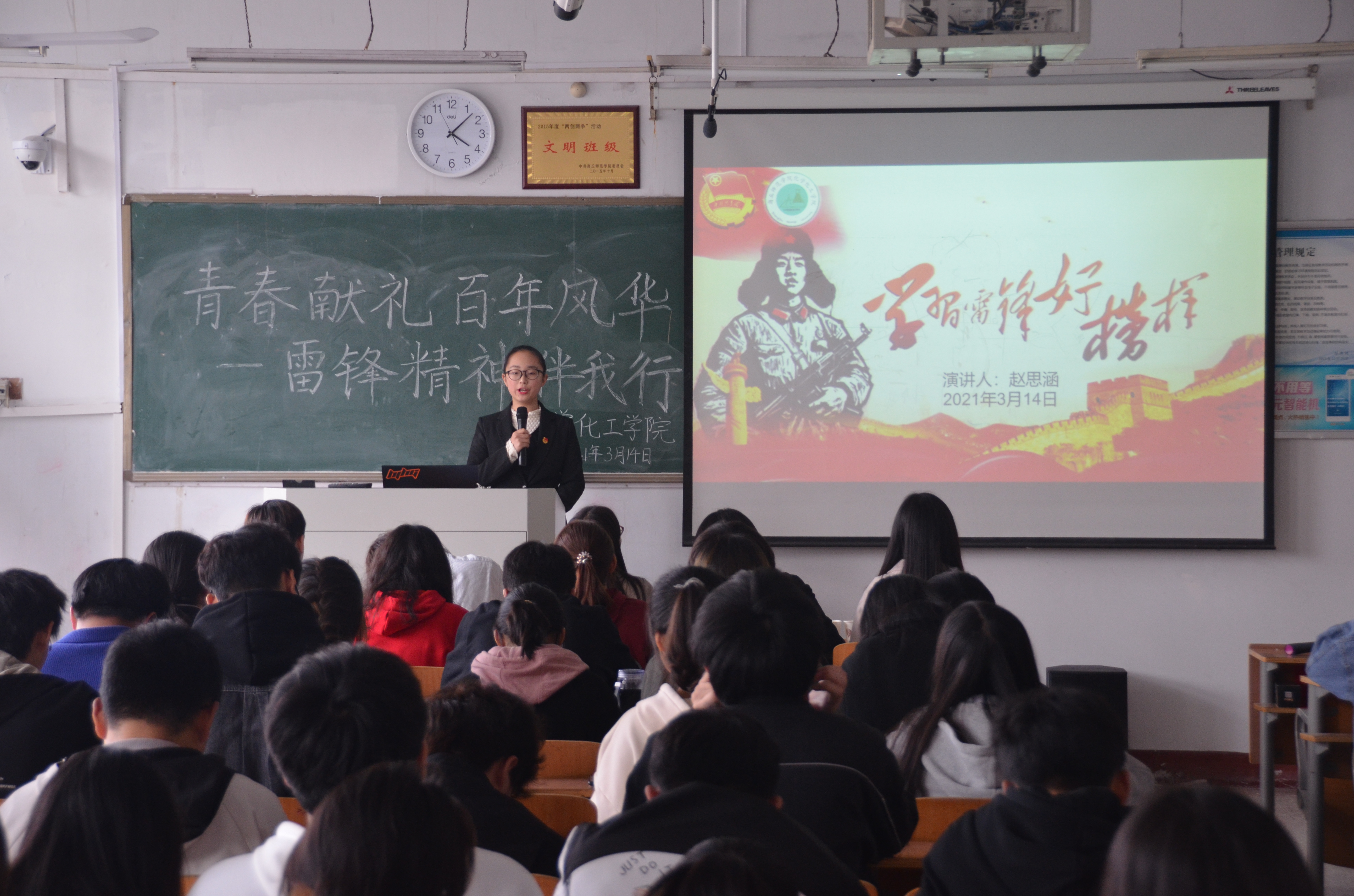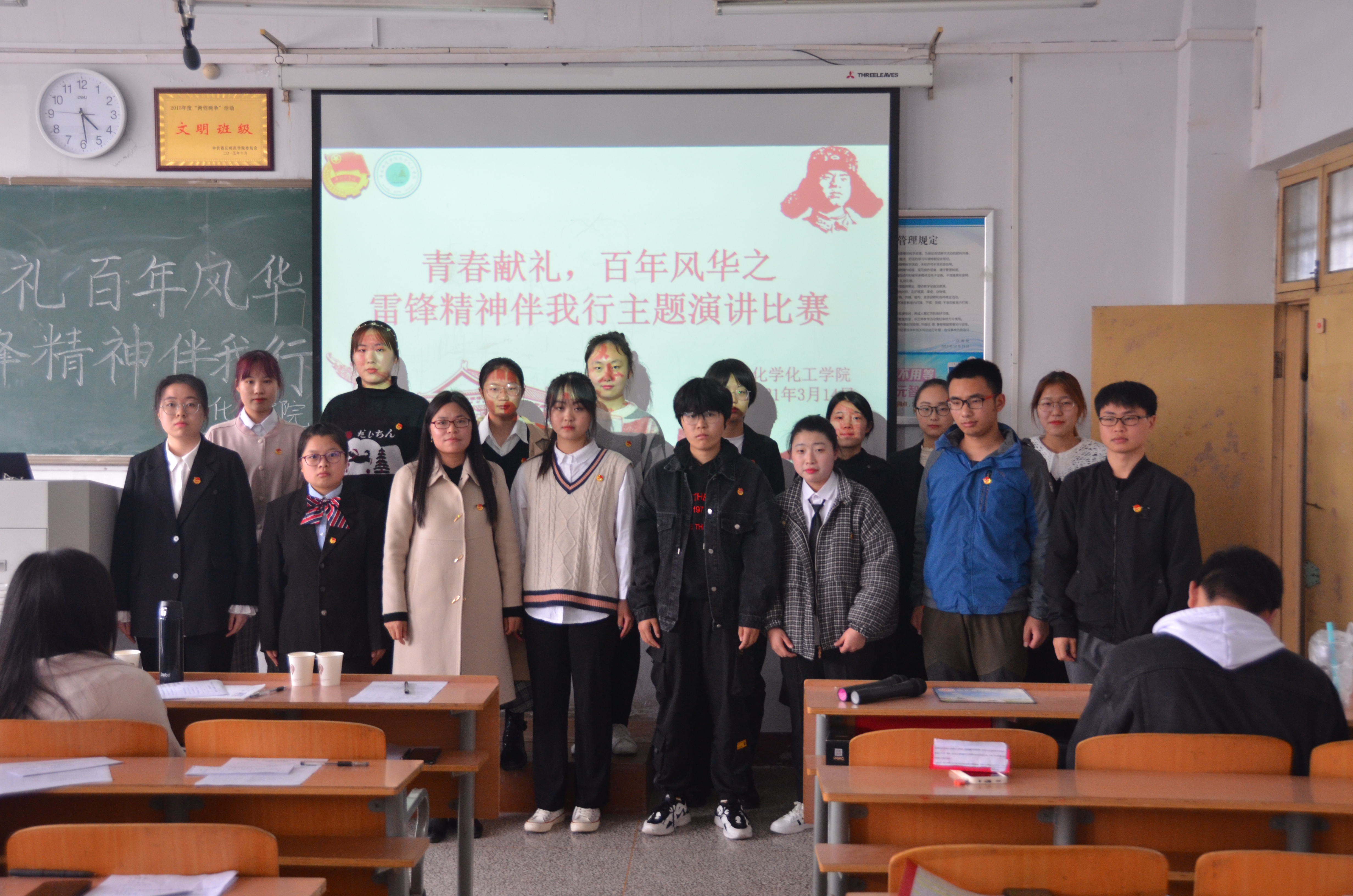为学习雷锋精神,弘扬中华传统美德,践行社会主义核心价值观,增强学生的无私奉献意识,展现当代大学生良好精神风貌。3月14日下午,化学化工学院于睢阳校区1号教学楼408教室举行了“青春献礼,百年风华——雷锋精神伴我行”主题演讲比赛,团总支副书记郭家瑞出席此次演讲比赛。