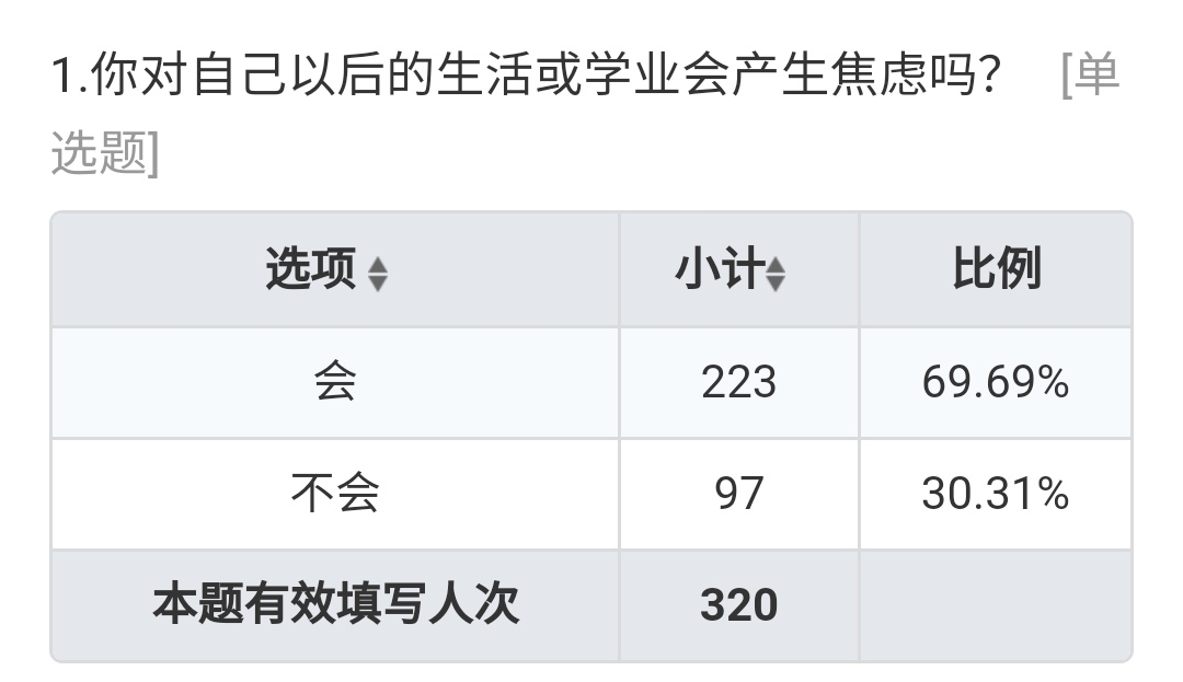 通过本次调查活动的开展,同学们对心理健康问题有了一定的了解。大学校园在一定程度上也是复杂社会的缩影,任何事情都不是一帆风顺的,经历坎坷与挫折是不可避免的,只有正视自己存在的问题,树立良好的心态,才能更好的实现自己的人生价值。