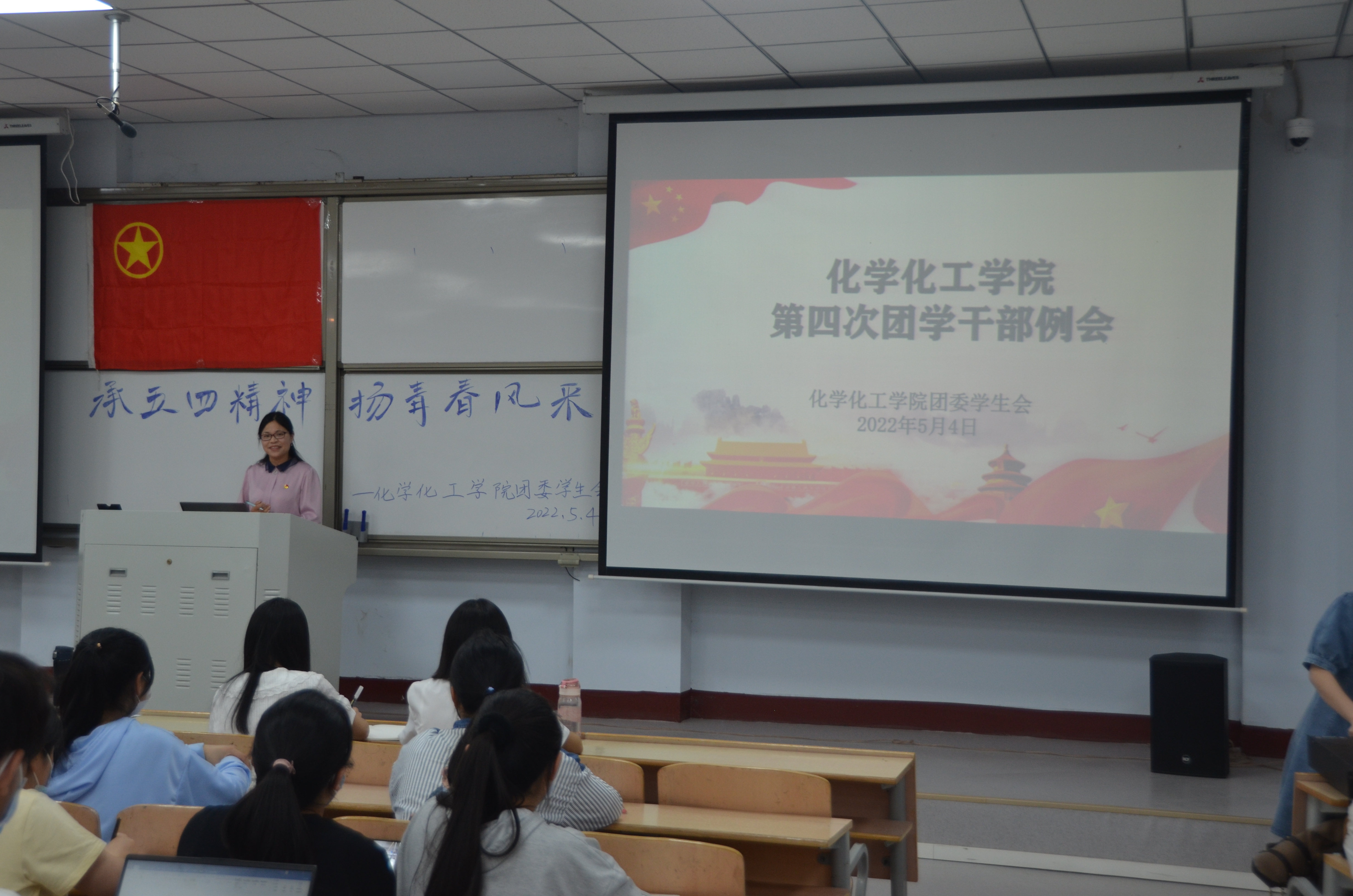 为了解近期学院团委学生会各部门的工作情况,提高各部门的团学工作能力,并对下一步工作进行具体安排,5月4日,化学化工学院在1号教学楼107教室召开了第四次团学干部例会。此次会议由院团委副书记郭家瑞主持,学院全体团学干部参加会议。