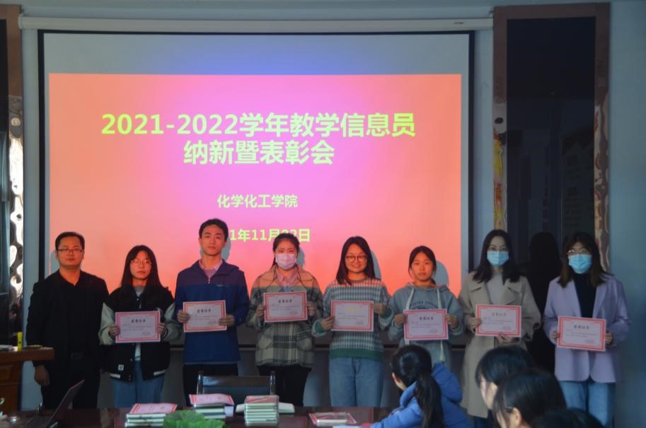 为进一步加强教学过程管理、提高课堂教学质量,充分发挥学生在教学环节中的积极作用,11月2日,化学化工学院于7号楼学院会议室召开了2021-2022学年学生教学信息员纳新暨表彰会。副院长王涛、学生工作办公室副主任史展、教学办主任胡春华、副主任徐星出席会议,全体学生信息员参与会议。