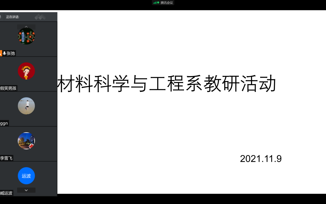 为进一步加强师德师风建设,提高专业教师的职业道德素养,化学化工学院材料系于11月9日通过腾讯会议在线召开了2021—2022学年第一学期的第五次教研活动。教研活动由系主任张弛老师主持,材料系全体老师参加此次活动。
