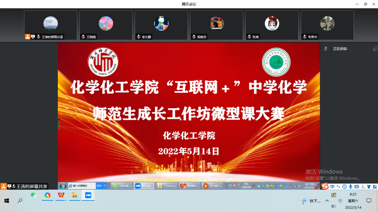 为了进一步提升师范生教育教学能力,强化师范生对课堂教学的把控能力,5月14日,永利23411集团“互联网+”中学化学师范生成长工作坊微型课大赛在睢阳校区1#503教室通过腾讯会议线上线下同时进行。本次微型课大赛评委老师由校外14位工作坊坊主、永利23411集团7位专业老师组成,全体工作坊学员线上参与观摩,大赛由副院长王涛主持。