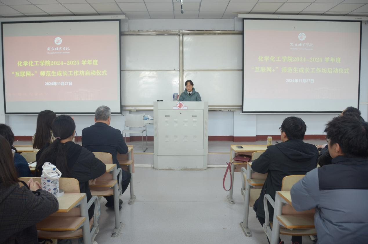在第一阶段,院长周艳丽致辞,对各位工作坊坊主的长期付出表示感谢,要求同学们要珍惜这次难得的求学机会,按时完成坊主老师布置的各项学习任务等。副院长王涛宣读了《2024-2025学年“互联网+”中学化学师范生成长工作坊工作实施方案》。