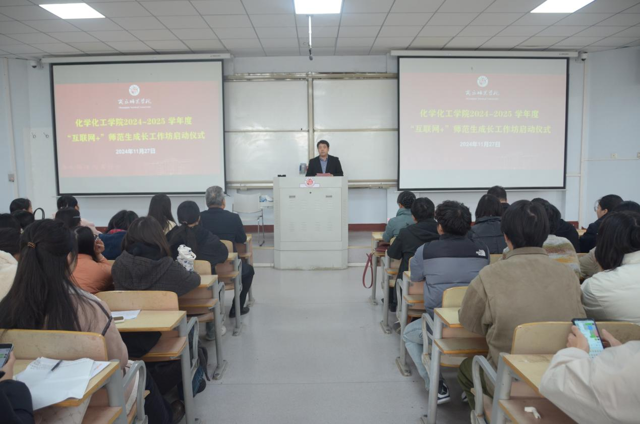 为进一步提升师范生实践能力与教育教学能力,11月27日,化学化工学院在睢阳校区1号教学楼106教室举行了2024-2025学年度“互联网+”师范生成长工作坊启动仪式。来自商丘市基础教育研究中心、商丘市第一高级中学、商丘市回民中学的5名中学化学一线名师,院长周艳丽、副院长王涛,化学系主任董辉,教师代表及2022级全体师范生参加了会议。