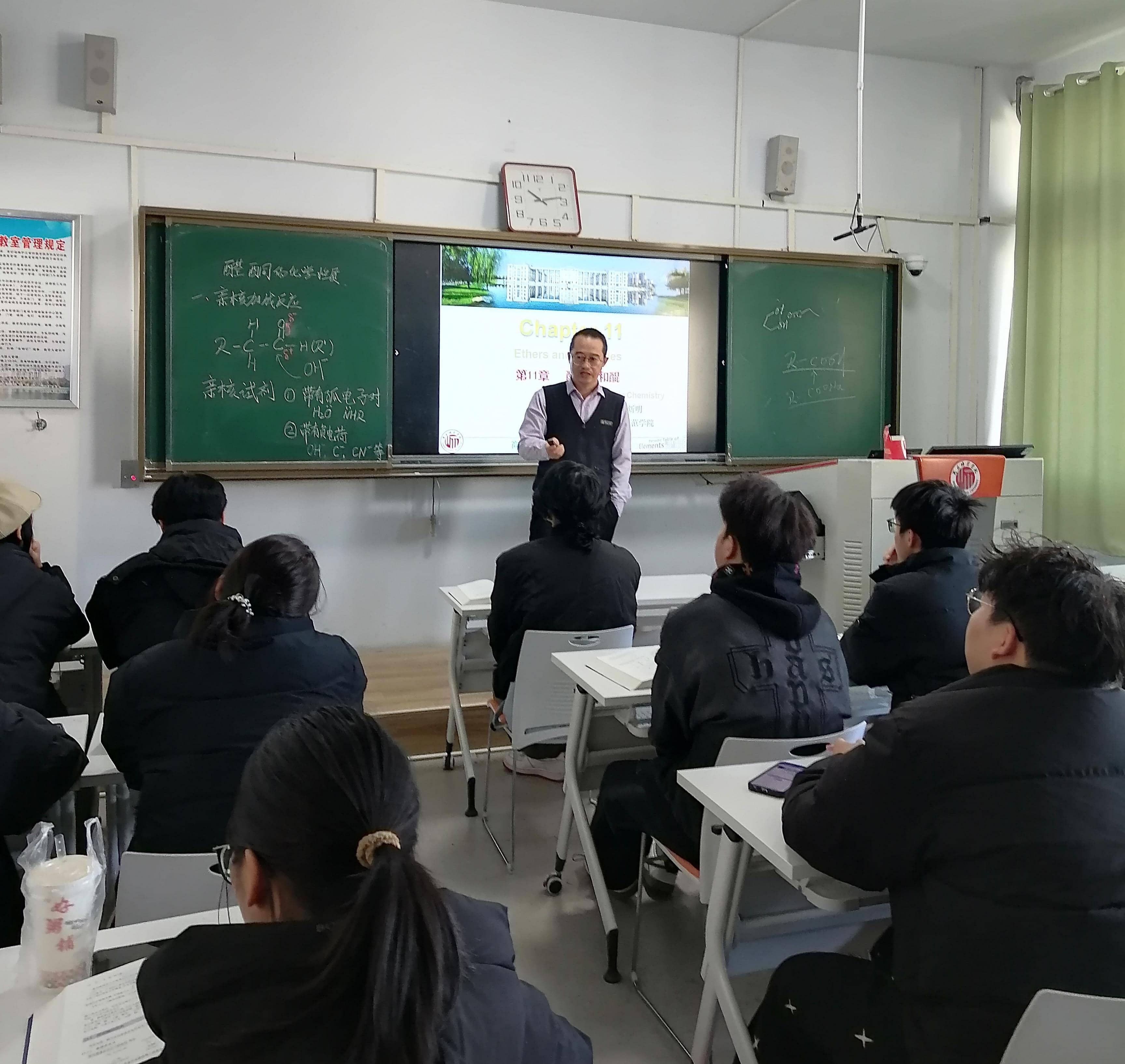 接着以第十一章醛酮的化学性质展开了本次公开课的教学,通过深度分析醛酮的官能团结构导出醛酮的化学性质,贯穿了“结构决定性质、性质决定应用”的基本思想,授课过程有机融入课程思政元素,整个教学过程深入浅出,学生参与感强,课堂氛围好。