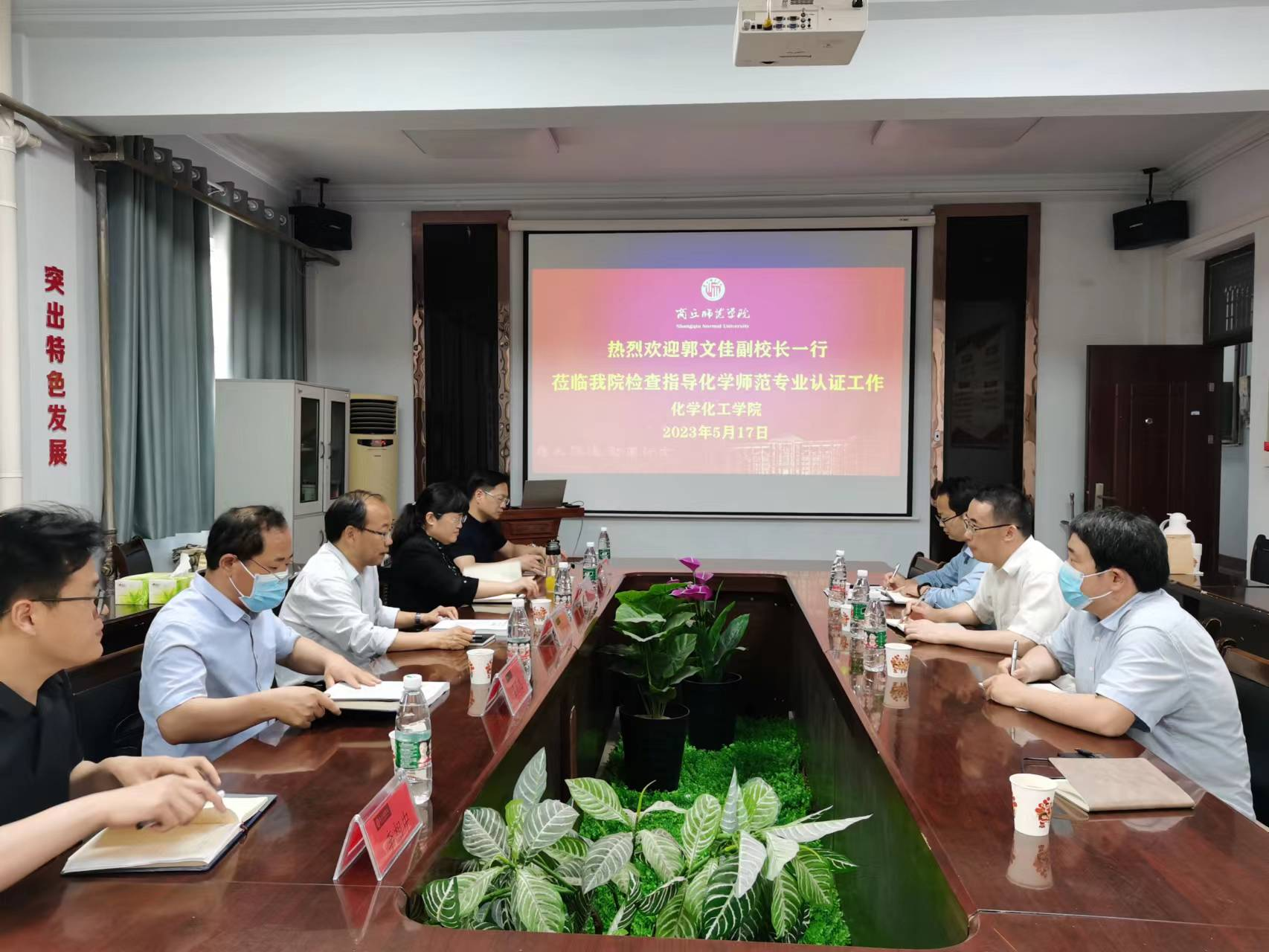 为确保化学师范专业认证工作顺利进行,5月17日,副校长郭文佳、教务处处长韩桂玲、教学评价与教师发展中心主任孟现志、副主任王峥、教学评估科科长李相中莅临永利23411集团检查指导化学师范专业认证工作。院长张银堂、副院长王涛、化学系主任董辉、教学办副主任徐星参加会议。
