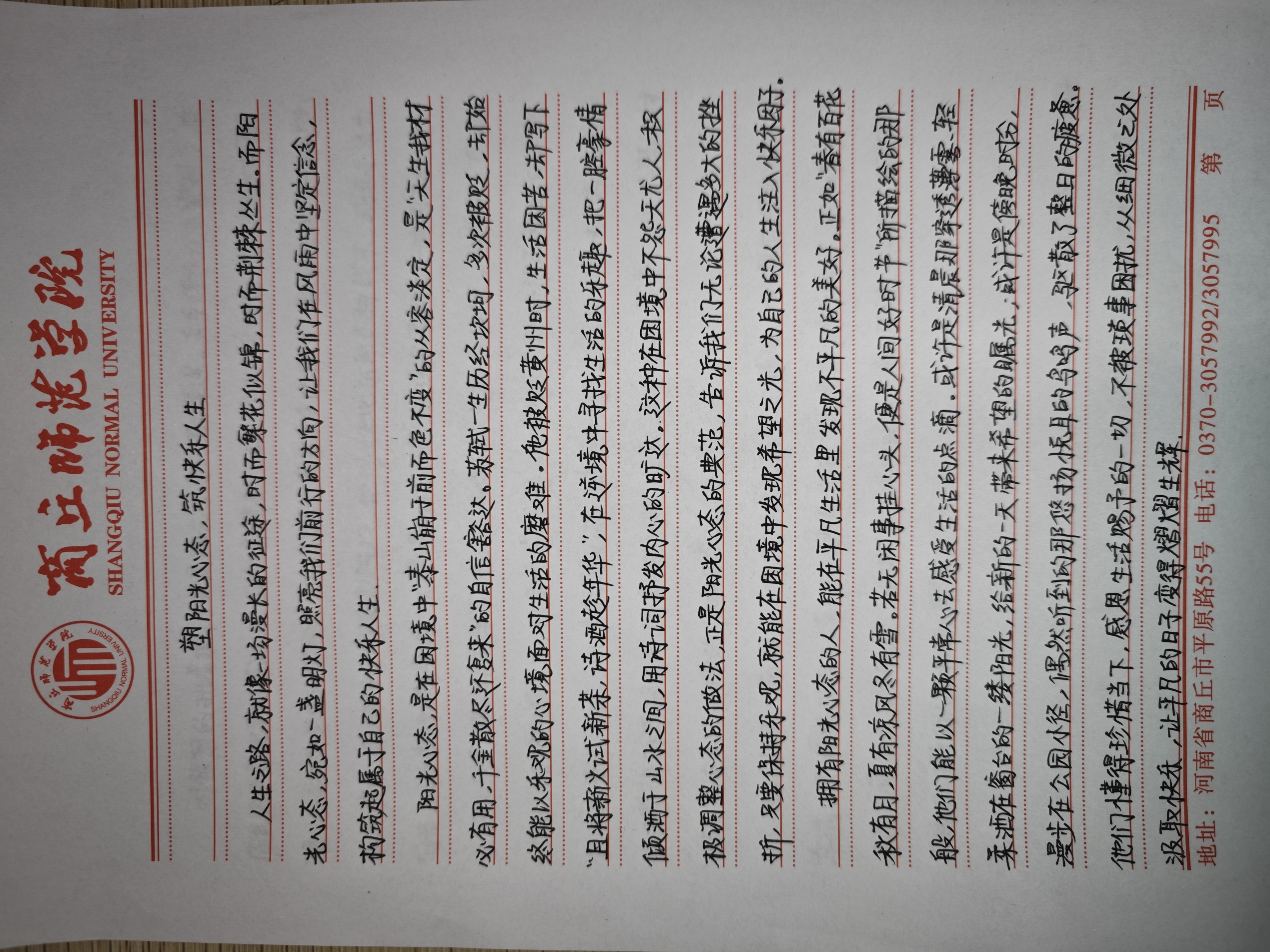 此次活动受到了同学们的积极响应。活动期间,同学们遵守活动纪律,积极投入,认真思考,充满极高的热情。他们用文字描绘阳光心态,分享那些温暖人心的故事、积极向上的感悟,用独特的视角和新颖的表达方式,让文章充满了趣味性和启发性。期望这次活动以后,同学们能正确认识自己的内心世界,提升自信心,践行阳光心态,构筑快乐人生。